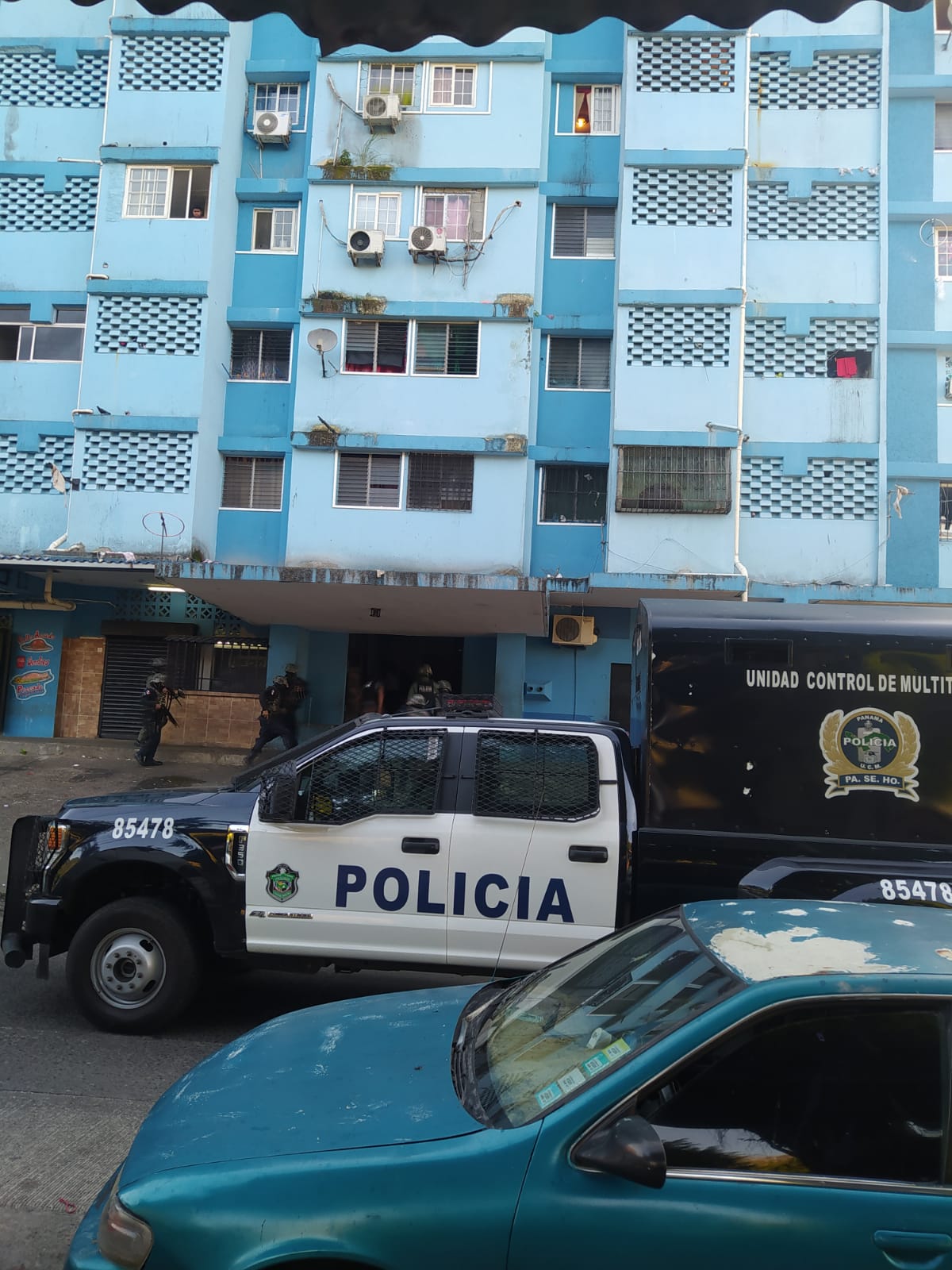 El Subcomisionado Jorge Bryant, Ejecutivo de la 8va Zona Policial, dijo que las unidades realizaron estas diligencias entre Calle 25 y Calle 26 en apartamentos del edificio conocido como la 15 Pisos, donde ubican un chaleco antibala de color Negro, tres envoltorios plásticos con contentivo de hierba seca que se presume sea marihuana, B/ 189.00 en efectivo, una pesa digital y dos teléfonos celulares.