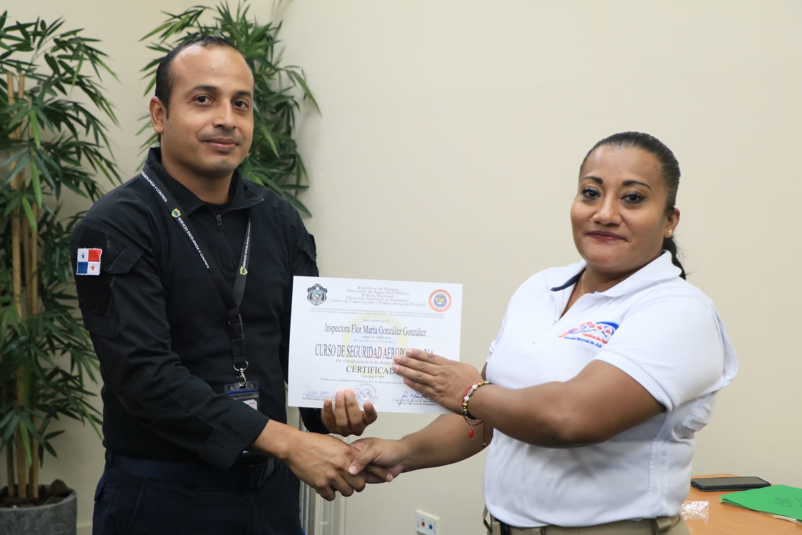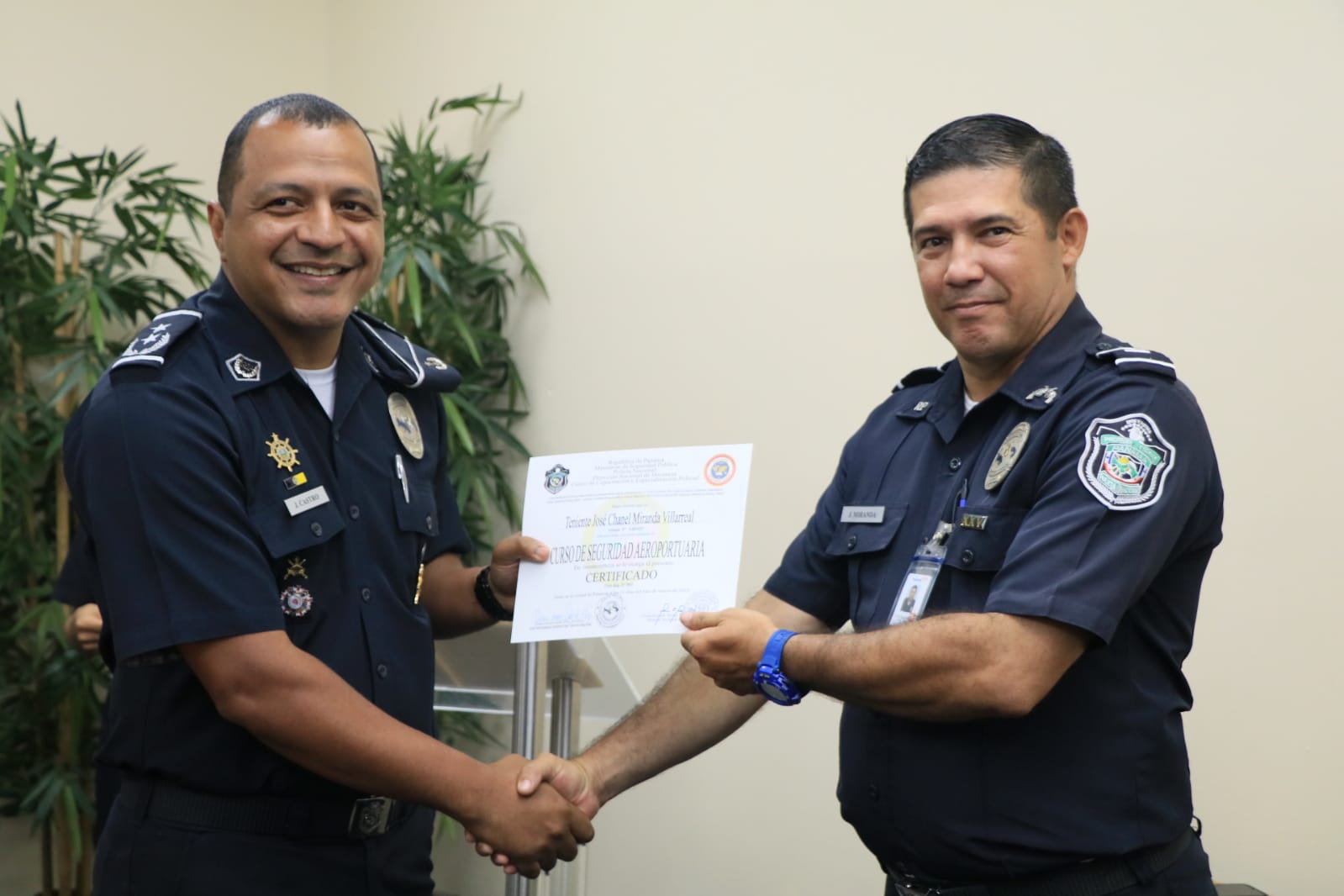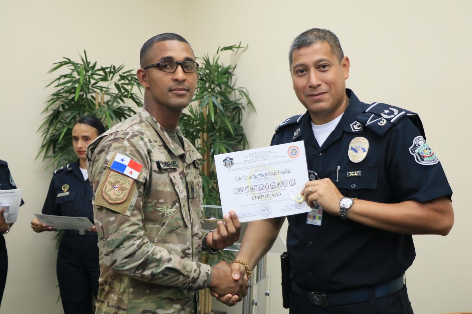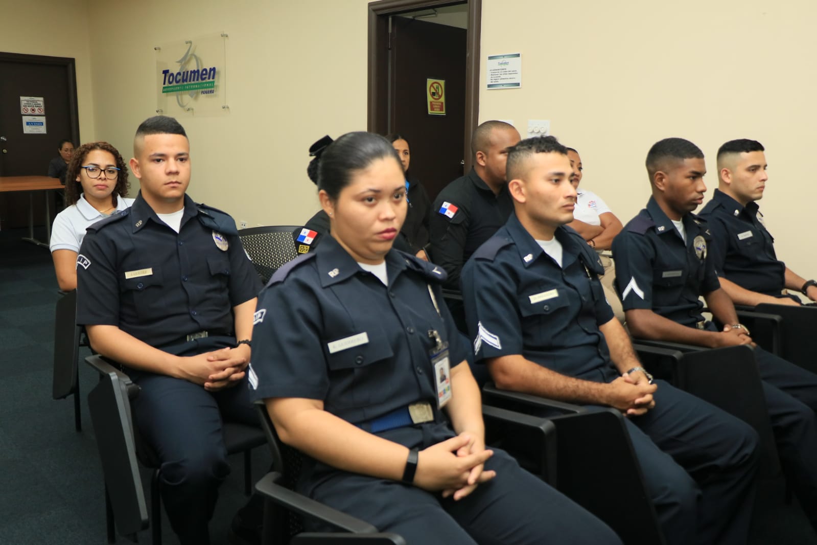 21 unidades de la Policía Nacional, Servicio Nacional de Migración, Autoridad Nacional de Aduanas y el Senan, recibieron sus diplomas tras culminar el Tercer Curso Interinstitucional de Seguridad Aeroportuaria. El jefe de Seguridad Aeroportuaria de la Policía Nacional, Subcomisionado José Castro indicó que la capacitación fortalece las capacidades en la labor que se gestiona de manera articulada para garantizar la seguridad en el Aeropuerto Internacional de Tocumen. Del 20 al 31 de marzo, las unidades fueron actualizados sobre las nuevas tácticas y estrategias de planificación y seguridad, en los que se abordaron conocimientos básicos en inglés, intervención en crisis, trato al público, perfiles, detección de delitos ambientales, procedimientos aduaneros y policiales, entre otros. Asimismo, a los instructores se les entregó certificados en reconocimiento a los conocimientos compartidos. |