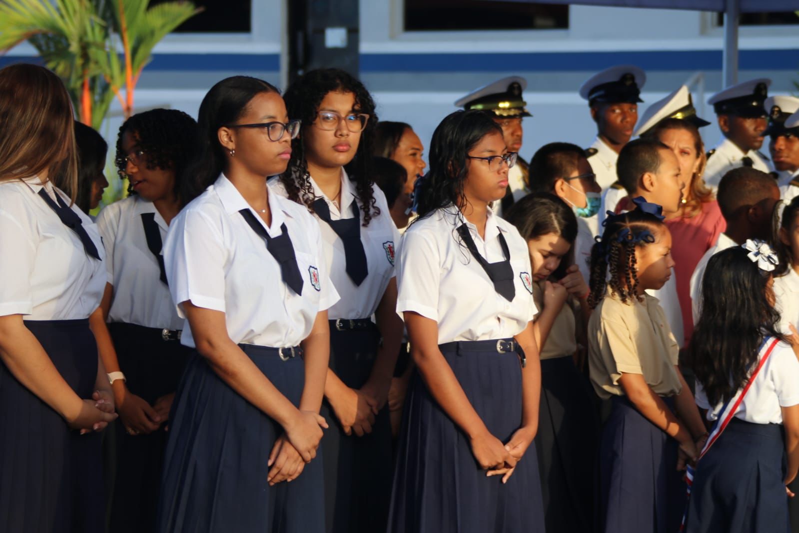 Unos 30 estudiantes participaron en la Ceremonia del Acto Cívico y homenaje a los héroes Postmortem en Cumplimiento del Deber, como parte del inicio a las actividades, en conmemoración al 14 de abril Día del Policía, ya son 86 Aniversario, fortaleciendo la Institucionalidad y a través de las estrategias operacionales se optimizan la Seguridad Ciudadana en todo el Territorio Nacional. El Director General John Dornheim junto a su esposa Claritza López de Dornheim, presiden el Acto Cívico, honrando a los héroes de la Patría, fallecidos en el cumplimiento del deber. Durante la ceremonia, el Director General John Dornheim acompañado por su esposa Claritza López de Dornheim, hicieron entrega de presentes a los estudiantes y docentes de los Centros Educativos Rufo Garay de Colón, y de Panamá el Instituto Nacional y la Escuela Bilingüe Pedro José Sosa, ubicados en la Ciudad Capital. |