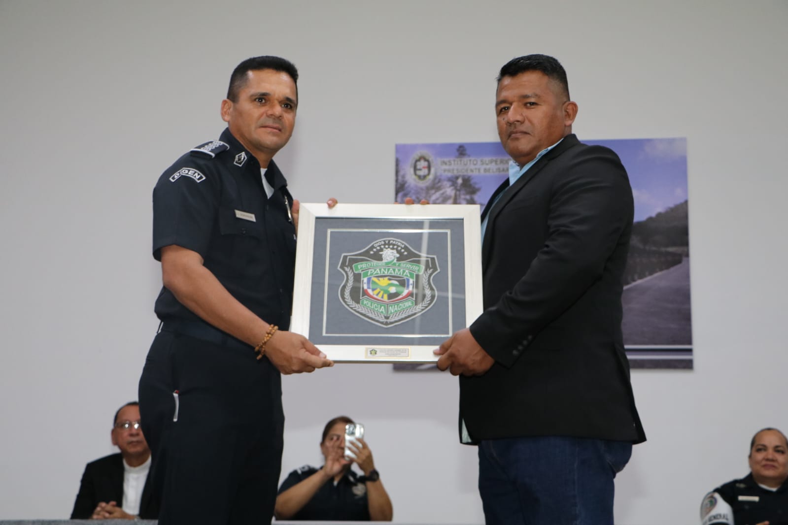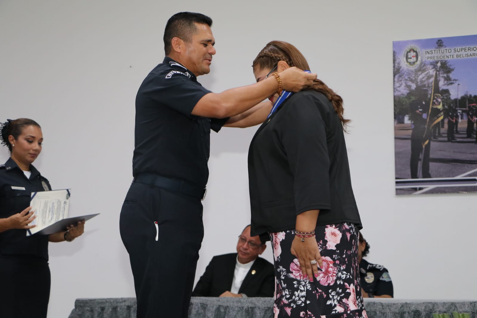 15 oficiales en retiro recibieron la Medalla General de Brigada Remón Cantera, en una ceremonia presidida por el Director General, Jonh Dornheim, en la que es reconocida su labor consagrada tras 30 años de servicio a la patria. "Gracias por todo, ustedes son ejemplo de sacrificio, disciplina, honor, lealtad y compromiso", indicó el Director General Dornheim, quien a su vez agradeció a sus familiares por el apoyo brindado a lo largo de estos años. Durante sus palabras, el Comisionado retirado Virgilio Lezcano en nombre de sus compañeros agradeció este gesto, expresando que ser policía representa un alto grado de responsabilidad que implica sacrificios pero que trae consigo muchas satisfacciones, entre ellas la de servir a los demás. La ceremonia es un homenaje a la trayectoria de este grupo de hombres y mujeres, que dieron valiosos aportes a la Institución y a la seguridad del país y El acto de condecoración de los oficiales en retiro en los rangos de comisionados, subcomisionados y mayores se realizó en el auditorio del ISPOl, y contó con la presencia de los miembros de directorio y familiares. |