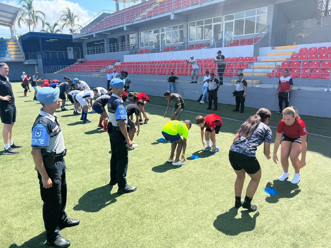 La Policía Nacional junto a la Embajada de Estados Unidos y la Organización Fútbol Liderazgo y Oportunidad realizaron clínicas deportivas en el corregimiento de El Chorrillo, donde les entregaron implementos a los niños y jóvenes, que forman parte de los programas preventivos que adelanta la Unidad Preventiva Comunitaria (UPC). Se trata de una donación de zapatillas, camisetas, balones y otros implementos, para que continúen con sus prácticas y desarrollen las habilidades en este deporte, indicó la Subcomisionada Itzel Calles, Jefa de la Unidad Preventiva Comunitaria. La actividad forma parte de los programas enfocados en fortalecer el desarrollo integral de los niños, niñas y adolescentes de diversas comunidades a nivel nacional. |