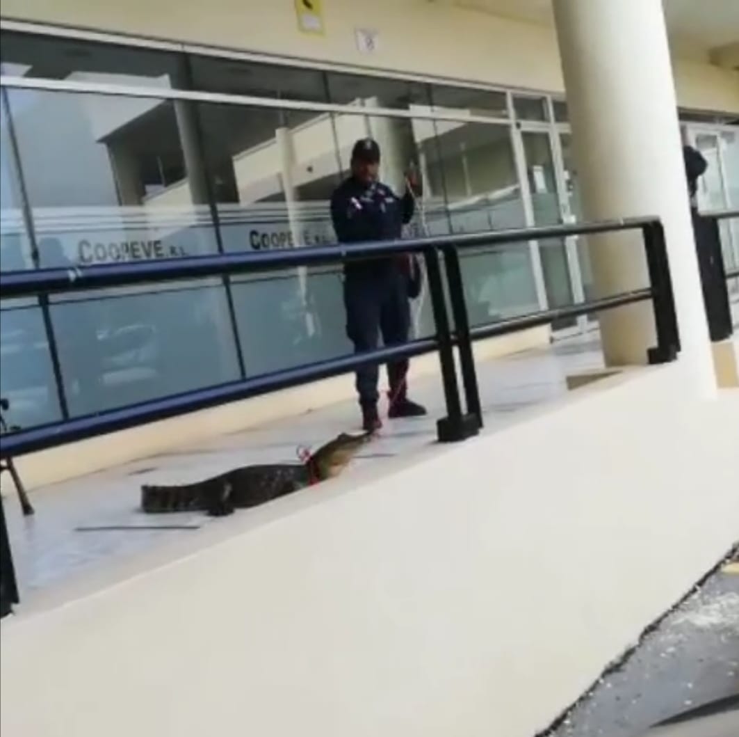 POLICÍA RESCATA A CAIMÁN QUE INGRESÓ A UNA COOPERATIVA EN LA CHORRERA