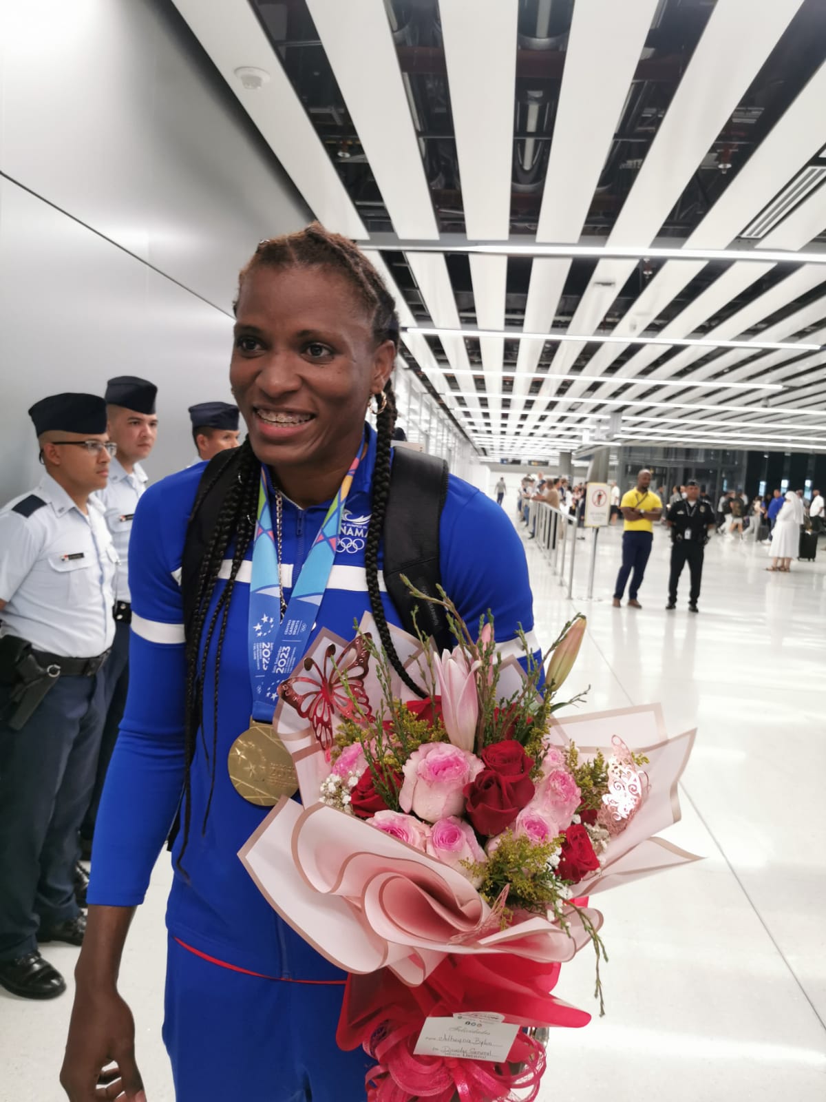 Una delegación encabezada por el Subdirector General de la Policía Nacional Simón Henríquez y miembros del Directorio Policial, recibieron en el Aeropuerto Internacional de Tocumen a la pugilista panameña Atheyna Bylon quien ganó la medalla de oro en los juegos Centroamericanos y del Caribe San Salvador 2023. Bylon ganó en semifinal de 75 kg en el boxeo olímpico cuando venció por decisión unánime a la colombiana Luisa Vásquez, para luego imponerse en la final por decisión unánime sobre la pugilista mexicana Citlali Ortíz. En un gesto de unidad y respaldo, miembros de los estamentos de seguridad le hicieron una calle de honor a la atleta quien recibió un ramo de flores de manos del Subdirector Henríquez.