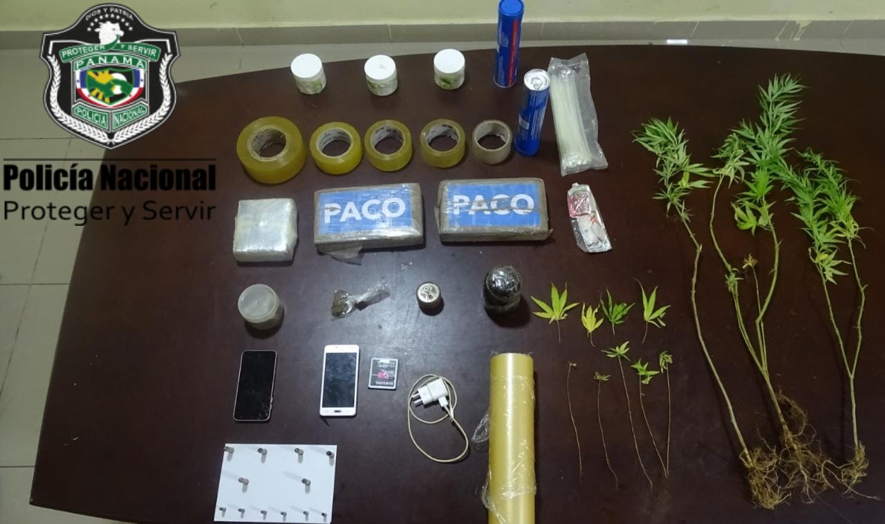 Las investigaciones determinan, que se incautaron tres paquetes; uno de ellos por la mitad forrados, con cinta adhesiva que se presume sea sustancia ilícita, 7 plantaciones de presunta marihuana, triturador, municiones varias, entre otros indicios vinculados al microtráfico.