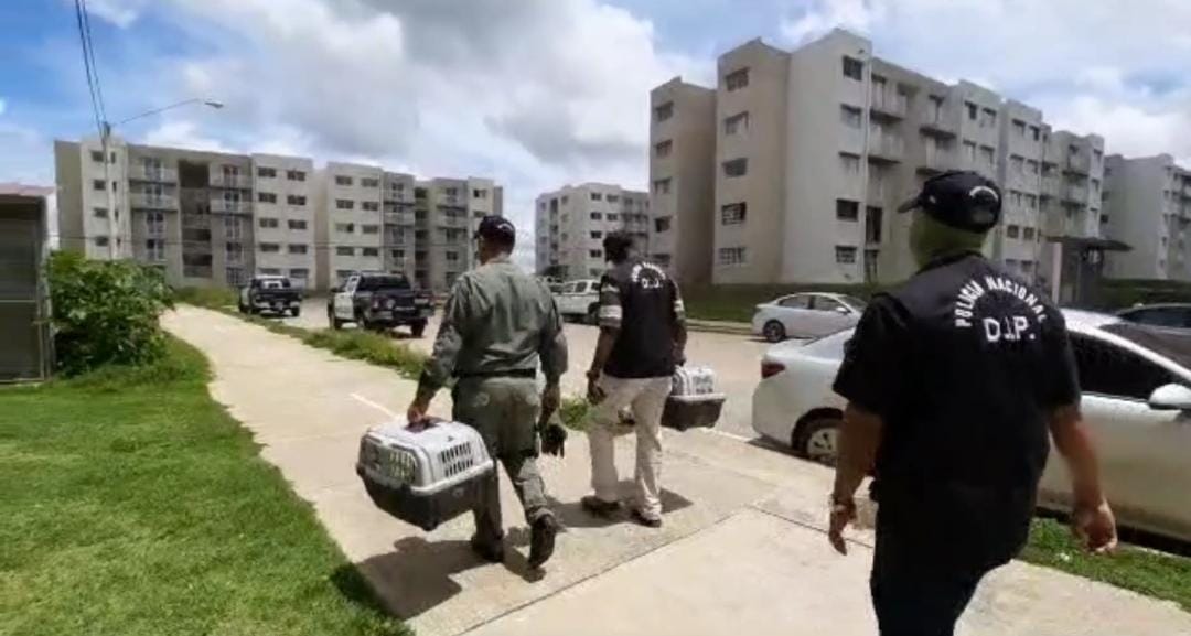 La Policía Nacional a través de la Dirección Nacional de Inteligencia Policial en conjunto con funcionarios del Ministerio de Ambiente mediante diligencia de allanamiento rescató 8 especies de animales silvestres como Loros cabeza roja, Monos Tití y Pericos verdes que se mantenían en cautiverio, en el distrito de Arraiján. Estos animales fueron hallados por los uniformados en jaulas pequeñas no actas para su cuidado, dentro de una Multifamiliar ubicada en Vacamonte y en una residencia en la Barriada en Valle Hermoso. Entre los animales rescatados, 5 eran aves y 3 Monos Tití, estos fueron examinados por las autoridades competentes y luego reubicado en su hábitat natural. La Policía Nacional continúa con sus operativos y campañas de sensibilización sobre el cuidado y protección de los animales tanto silvestres como domésticos; exhortando a la comunidad a denunciar estos casos. |