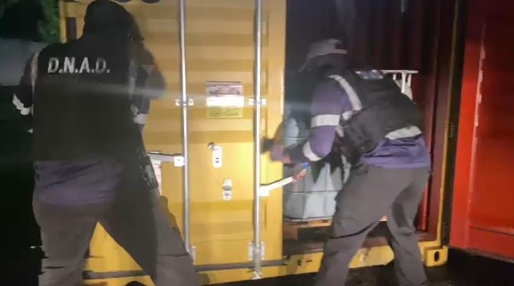 POLICÍA INCAUTA 223 PAQUETES DE PRESUNTA DROGA DENTRO DE UN CONTENEDOR