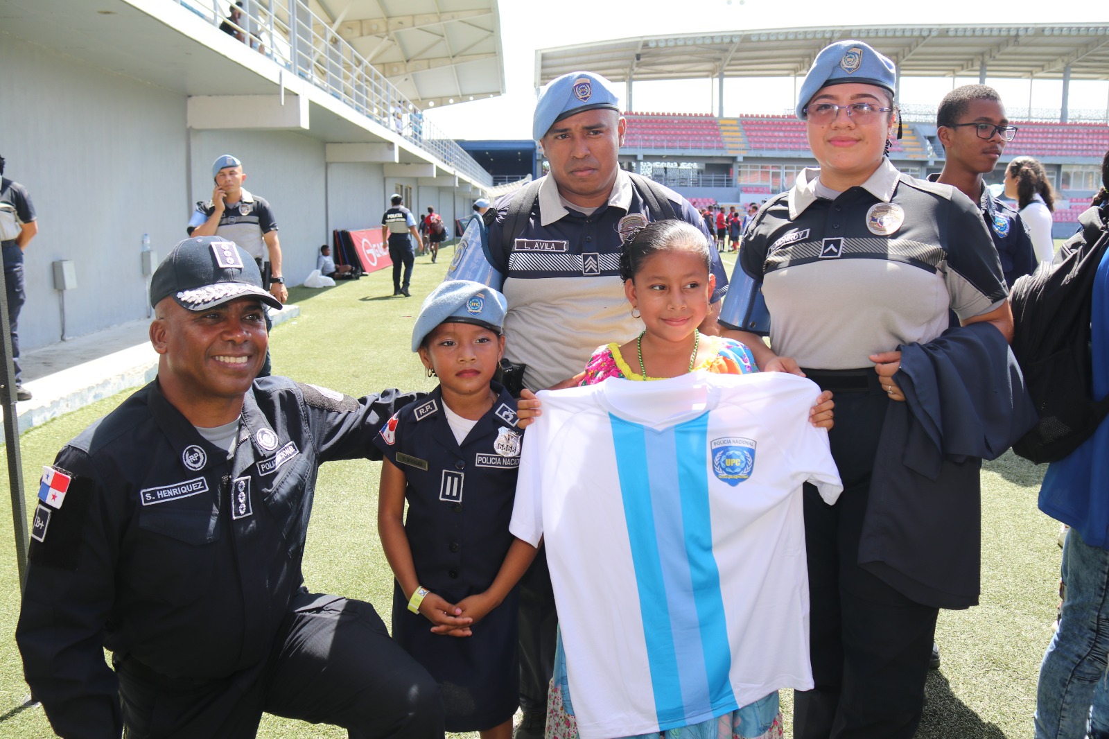 La actividad estuvo presidida por el Director General, de la Policía Nacional, John Dornheim acompañado por el Subdirector General, Simón Henríquez quienes dialogaron con los jóvenes sobre la importancia del deporte, las metas y las ganas de superación. Este torneo deportivo busca integrar jóvenes de entre 12 a 14 años de diferentes programas preventivos que llevan a cabo las UPC a nivel nacional fortaleciendo los valores y lazos de amistad, independiente los sectores donde residan éstos jóvenes, interactúan enfocados en mantener una sana convivencia pacífica. El evento no solo fortaleció la relación entre la policía y la comunidad, sino que también dejó un mensaje claro: la seguridad y el bienestar de los ciudadanos son una prioridad, y la unión a través del deporte es una poderosa herramienta para construir puentes de confianza y amistad. |