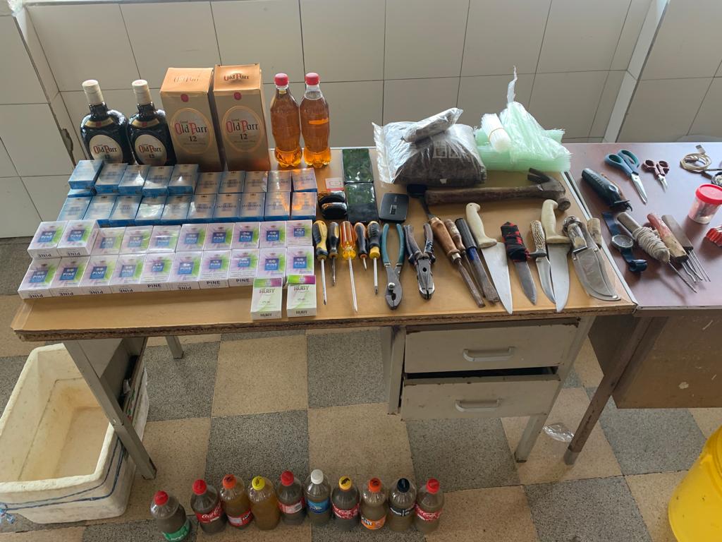Unidades de la Policía Nacional realizan el Operativo Armagedón, en el cual se implementa una requisa en el Centro Penitenciario de Tinajitas, ubicado en el distrito de San Miguelito con miras a mantener las medidas de seguridad para el bienestar tanto de los internos como del personal que allí labora. En esta requisa se ubican 238 carrizos plásticos transparentes que en su interior contienen un polvo de color blanco que se presume sea sustancias ilícitas, además de 472 cajetillas de cigarrillos, 35 celulares y 19 chips, además de botellas de licor, alicates y destornilladores. Con estos operativos se busca mantener la convivencia pacífica además de detectar anomalías y evitar la introducción de artículos prohibidos dentro del penal. |