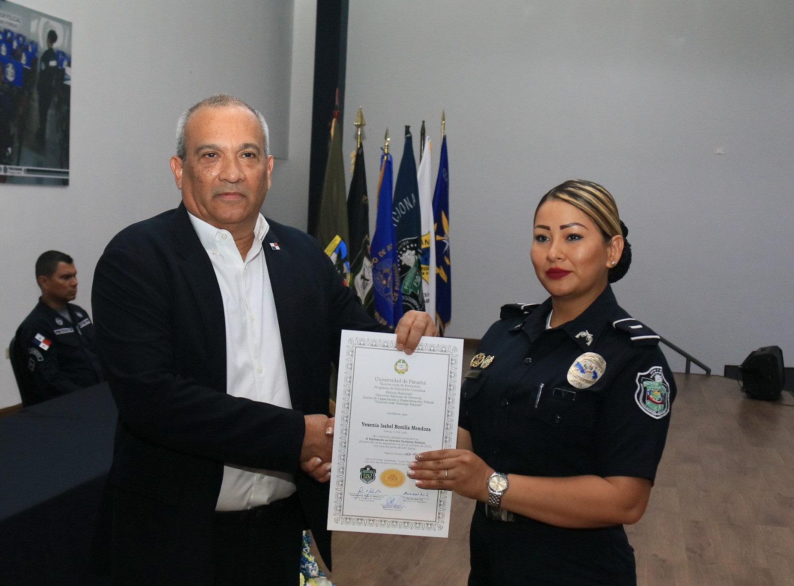 Unas 57 unidades de la Dirección Nacional de la Policía Ambiental, Rural y Turística recibieron sus certificados tras culminar el II Diplomado en Gestión Turística Policial y el IV Diplomado de Protección y Conservación del Medio Ambiente, siendo el primero internacional. El Ministro de Ambiente, Milciades Concepción felicitó a la Policía Nacional por estas capacitaciones que fortalecen los conocimientos y competencias de las unidades en la labor de proteger y conservar los recursos naturales. Asimismo, el Comisionado Elmer Caballero, Director Nacional de la Policía Ambiental, Rural y Turística indicó que esta docencias y capacitación les brinda las herramientas necesarias para ser guías de turismo y protectores del medio ambiente, como parte de las estrategias encaminadas a fortalecer ambas áreas consideradas un binomio importante en el desarrollo del país. El Comisionado Caballero destacó la participación de unidades de la Policía Nacional de las hermanas republicas de Ecuador y Perú, lo que también permite afianzar la cooperación conjunta en el intercambio de conocimientos necesarios en la protección de la fauna y flora amenazadas, por la caza ilegal y el cambio climático. |