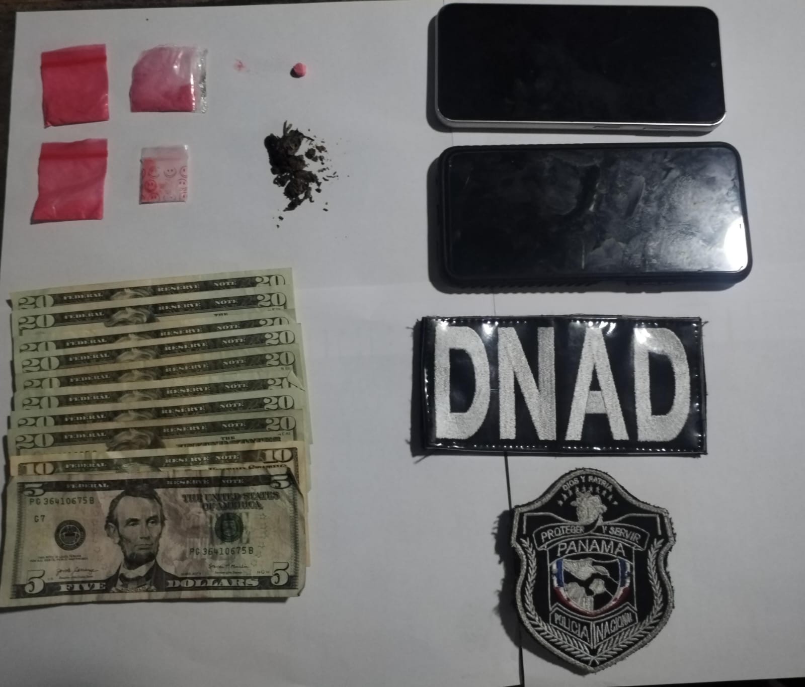 La Policía Nacional a través de sus acciones operativas logra la aprehensión de dos hombres con presunta sustancia ilícita en la provincia de Colón. Los uniformados que se mantenían en un Punto de Control, cuando a bordo de un auto viajaban dos personas con actitud inusual quienes al ser verificadas mantenían en su poder 4 sobres tipo Ziploc y un fragmento, contentivos de polvo rosado que se presume sea Droga, cierta cantidad de hierba seca, posible marihuana, B/. 175.00 en efectivo y 2 celulares. Los aprehendidos y los indicios fueron puestos a órdenes de las autoridades competentes. |