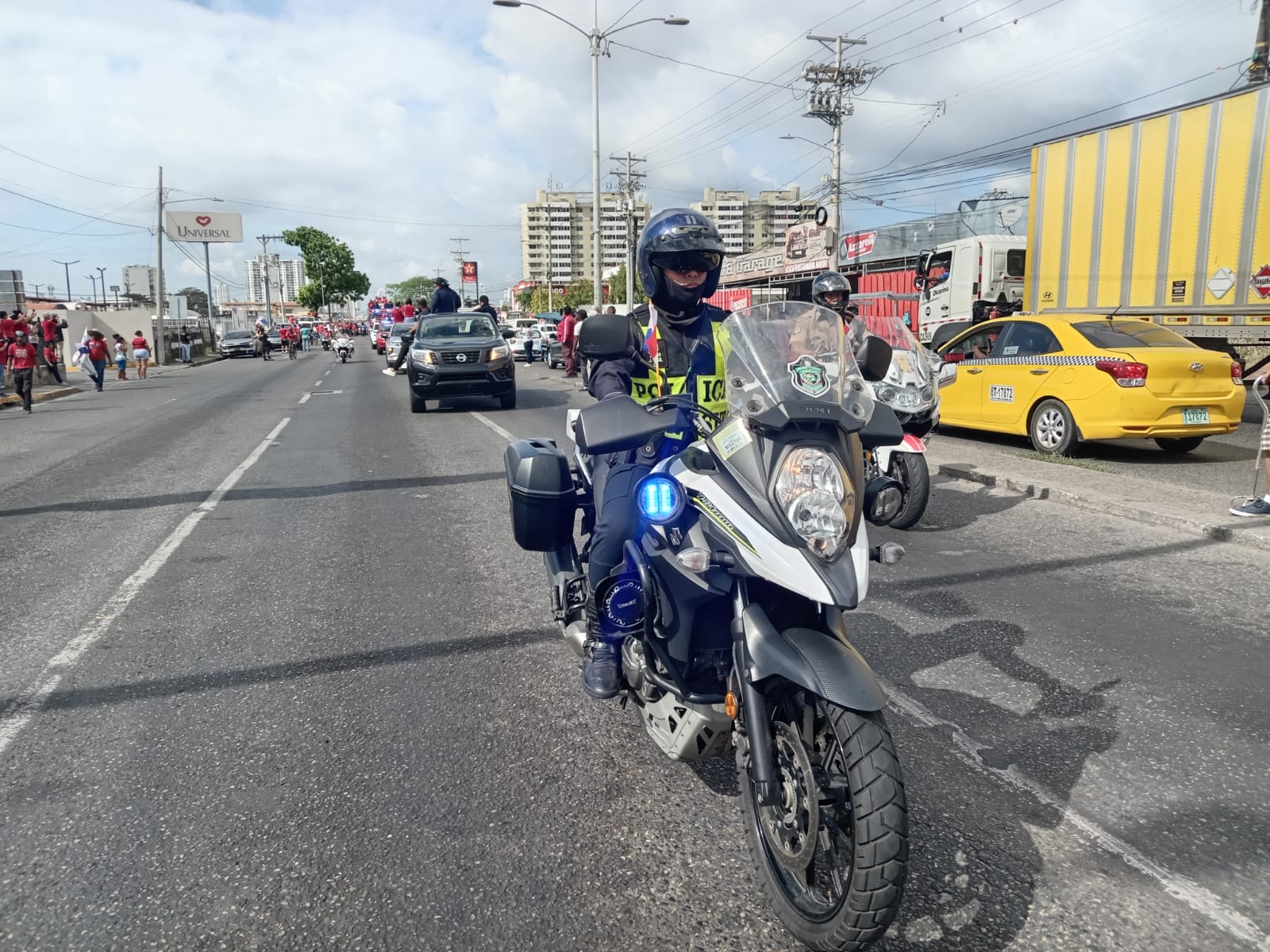 En un conmovedor acto de solidaridad y apoyo, la Policía Nacional a través de la DNOT mantiene el ordenamiento de las calles y avenidas del Distrito de Panamá asegurando la tranquilidad y seguridad vial durante la caravana del despedida en honor al destacado atleta, Luis "Matador", Tejada.