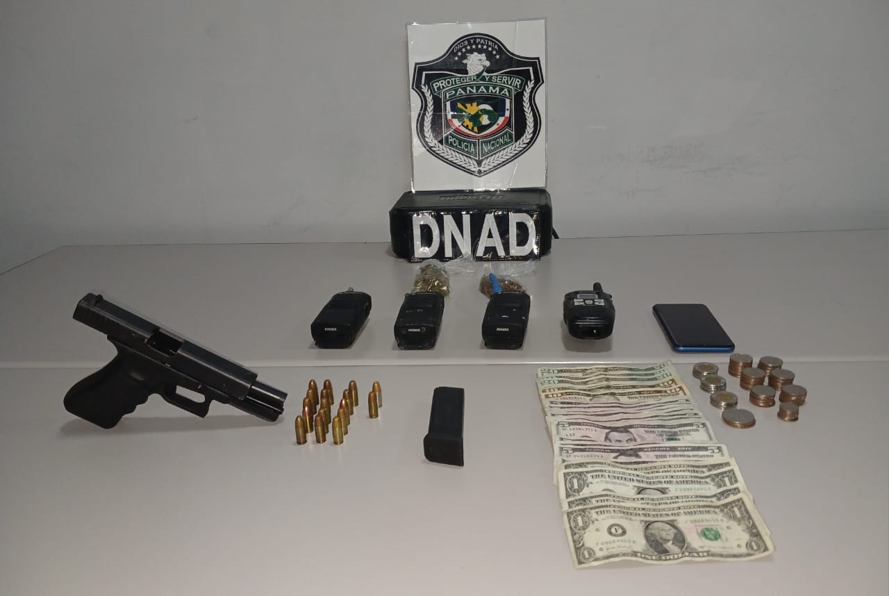 Las diligencias de allanamientos dan con la incautación de un arma de fuego con sus municiones, presunta droga, dinero en efectivo y, cuatro radios portátiles.