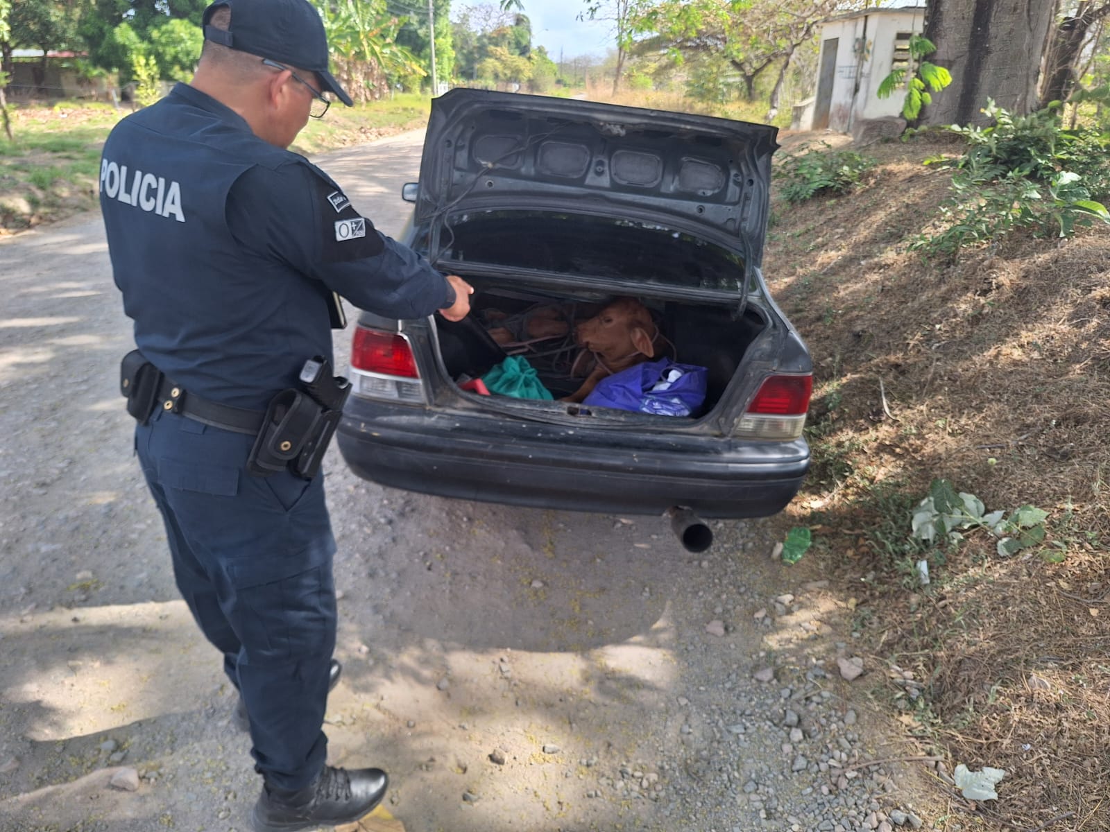 La Policía Nacional aprehende a tres personas por el presunto delito de cuatrerismo, las mismas transportaban un ternero en el maletero de un vehículo, la acción policial se desarrolla en la provincia de Coclé, también se recupera al ternero que presuntamente fue hurtado de una finca ubicada en Antón. Una alerta ciudadana informó que sujetos desconocidos, habían introducido un ternero pequeño dentro del maletero de un auto. De inmediato se activa un operativo, reteniendo al vehículo con las características señaladas con tres adultos abordo y, al proceder a la revisión del auto se ubica al ternero dentro del maletero, razón por la cual los implicados junto a los indicios fueron remitidos ante las autoridades judiciales correspondientes a fin de profundizar las investigaciones de rigor. |