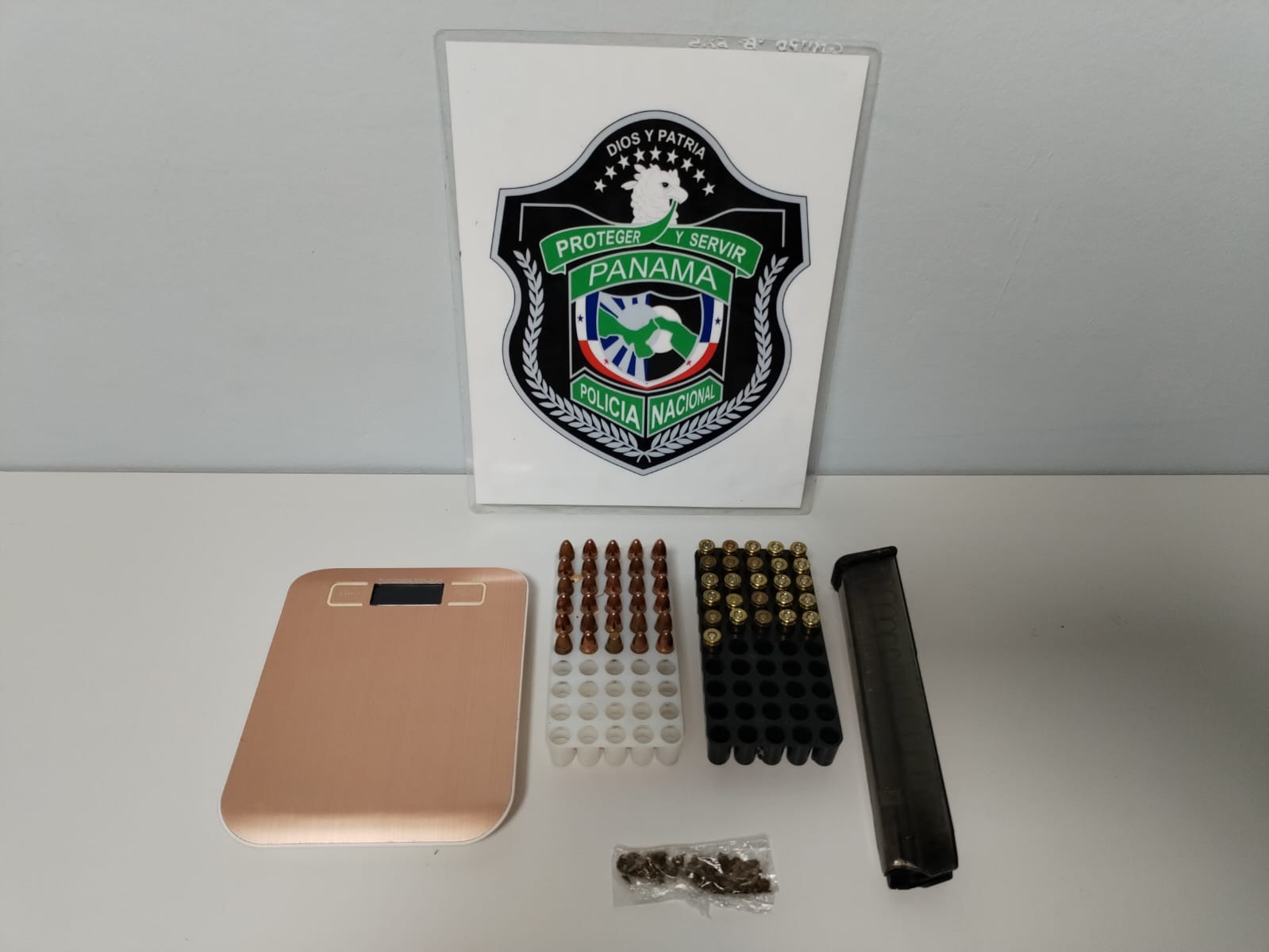 Luego de una diligencia de allanamiento y registro realizada en una residencia en el sector de Mano de Piedra en el distrito de San Miguelito, la Policía Nacional decomisa presunta droga y municiones. Por este hecho hay dos aprehendidos entre ellos una femenina. Entre los indicios recuperados hay 56 municiones de diferentes calibres, un proveedor de 9 milímetros, un sobre transparente son hierba seca que se presume sea marihuana y una pesa digital. Los aprehendidos y los indicios fueron puestos a órdenes de las autoridades judiciales correspondientes a fin de profundizar las investigaciones de rigor. |