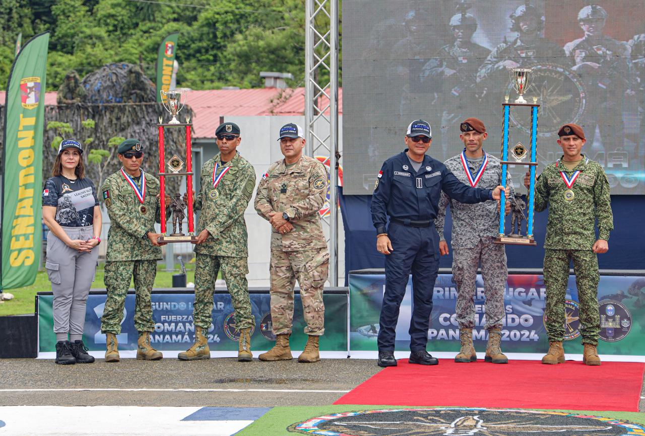 Hoy se llevó a cabo la ceremonia de premiación y clausura de la competencia internacional Fuerzas Comando Panamá 2024, donde el equipo anfitrión de Panamá quedó de cuarto lugar. El podio ganador luego de dos semanas de eventos físicos y técnicos estuvo compuesto por: México ocupando el primer lugar, Colombia segundo lugar y Estados Unidos en el tercer lugar. En todas las actividades nuestros comandos participantes efectuaron diversos eventos concernientes a la competencia, tales como pruebas físicas, eventos de tiro, marchas forzadas con tiro, asalto combinado, eventos acuáticos, cruce de obstáculos y el seminario de líderes. Las actividades que se efectuaron en las diferentes jornadas también incluyeron aptitudes de destreza, rapidez y efectividad, proyectando las múltiples capacidades y conocimientos de nuestros comandos de las Américas. El “Monstruo verde”, área del polígono y de otras actividades físicas fue el escenario donde los competidores demostraron su valentía, destreza y convicción, a cambio de lograr un solo objetivo, el título de las Fuerzas Comando 2024. El paso por todos los obstáculos fue exigente y desafiante, en el que la resistencia y la camaradería fue a su vez pieza fundamental para lograr los diversos resultados obtenidos por los equipos. Más que una competencia, es una iniciativa conjunta de intercambio de estrategias, información y conocimientos para ser integrados en la región en contra de los desafíos y flagelos transnacionales a los cuales se enfrentan los países del hemisferio occidental. Al evento de clausura acudieron el presidente de la República de Panamá, Laurentino Cortizo Cohen, Jefa del Comando Sur, Laura Ricahrdson, la Embajadora de los Estados Unidos en Panamá, Mari Carmen Aponte, Ministro de Seguridad Juan Manuel Pino, Director General de la Policía Nacional John Dornheim y otros directores de los Estamentos de Seguridad. |