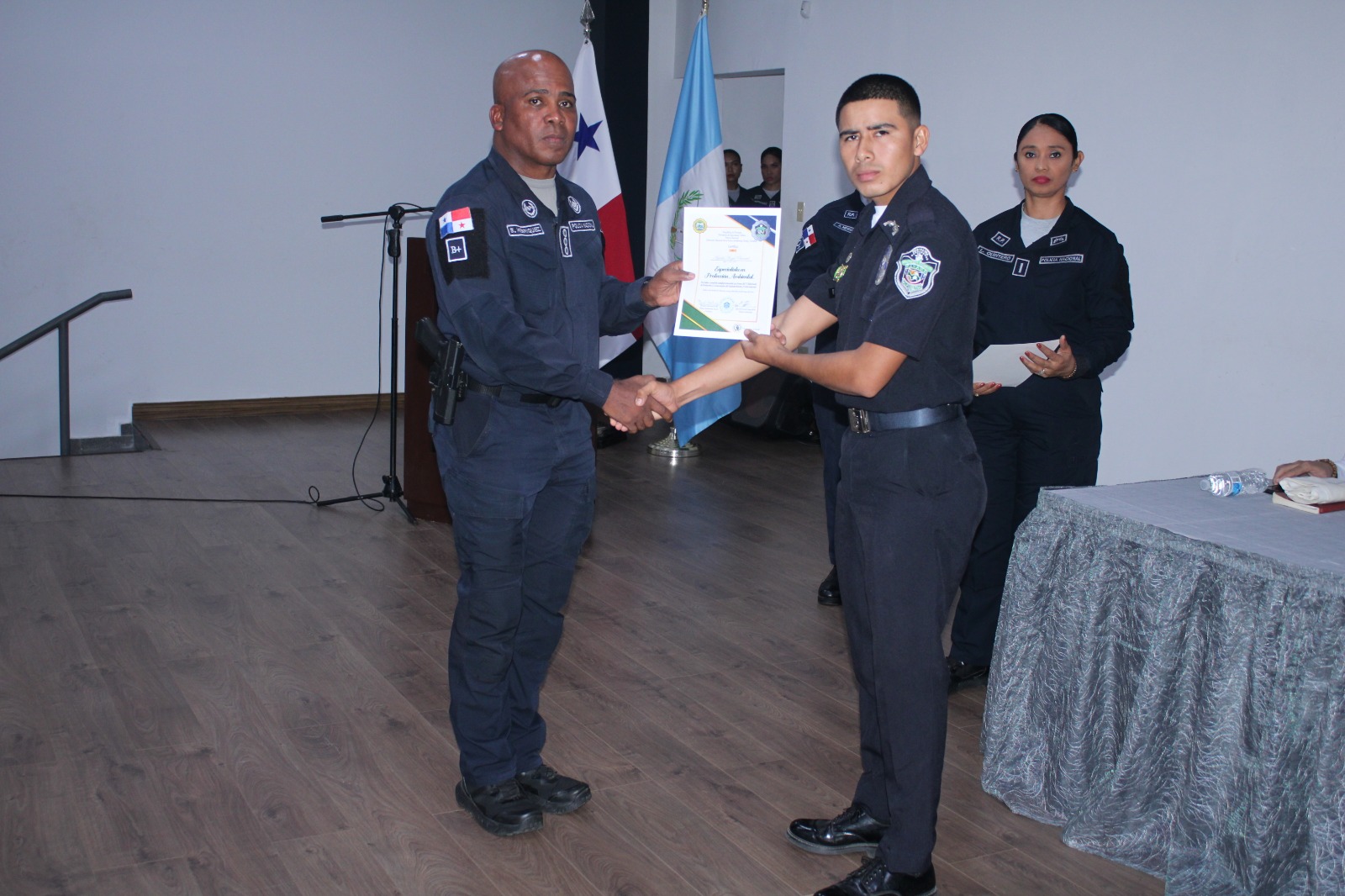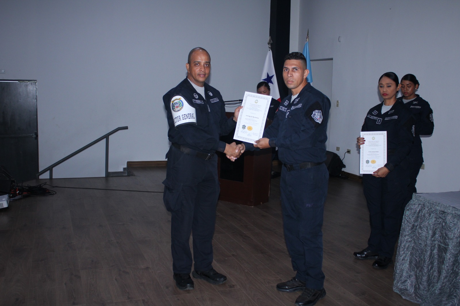Unas 81 unidades de las diferentes Direcciones, Servicios Policiales y Estamentos de Seguridad reciben sus certificados tras culminar el Diplomado en Diseño y Desarrollo Curricular, Diplomado en Docencia Aplicado al Proceso de Enseñanza, Curso de Instructor en Metodología, Aprendizaje Experiencial y el Diplomado de Protección y Conservación del Medio Ambiente, siendo el segundo internacional. Las unidades quienes recibieron este diplomado dictado en Centro de Capacitación y Especialización Policial, CECAESPOL adquirieron las bases Teórico- Metodológicas y Pedagógicas que les permitirá la comprensión de los fundamentos educativos, la utilización de la tecnología, el diseño de las evaluaciones, la experiencia concreta de enseñanza y aprendizaje apegadas a la constitución y a las leyes de la República. El Ministro de Ambiente, Milciades Concepción felicitó a la institución por estas capacitaciones que fortalecen las competencias y conocimientos de las unidades en la labor de proteger y servir al país desde los diversos ámbitos. Le correspondió al Subdirector General de la Policía Nacional, Simón Henríquez, junto a miembros del Directorio entregar los certificados, a su vez exhortó a las unidades a aprovechar lo aprendido y ponerlo en práctica en su labor diaria con responsabilidad y profesionalismo. En este diplomado también participaron unidades de la Policía Nacional de Guatemala, quienes afianzaron la cooperación conjunta en el intercambio de conocimientos necesarios en combate a los delitos ambientales transnacionales. |