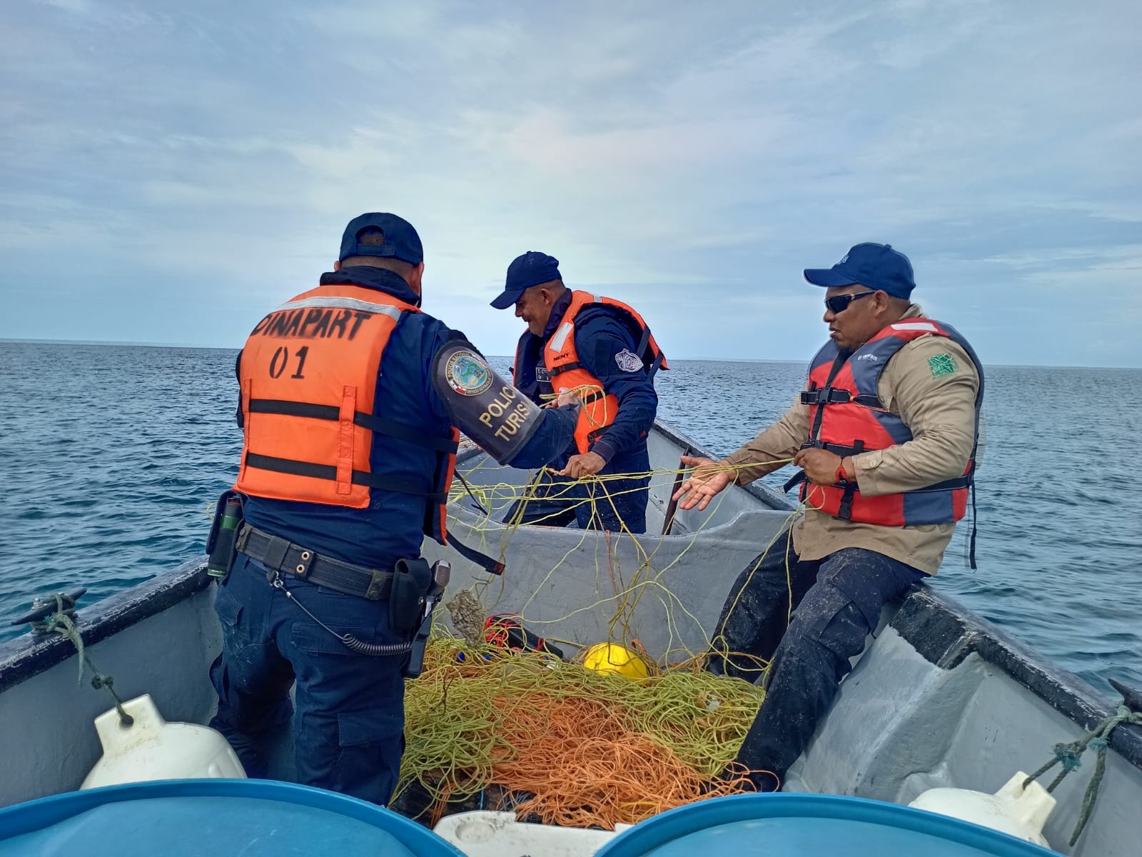 Mediante patrullajes Acuáticos de vigilancia y control en el Archipiélago de la provincia de Bocas del Toro, unidades de la Policía Ambiental junto al Servicio Nacional Aeronaval y Mi Ambiente Panamá decomisan 10 trasmallos, presuntamente utilizados para la pesca ilegal de especies de fauna marina, tales como tortugas. Este método utilizado por algunos pescadores afecta e impacta en el momento de la reproducción de las especies marinas, provocando daños irreversibles. |
