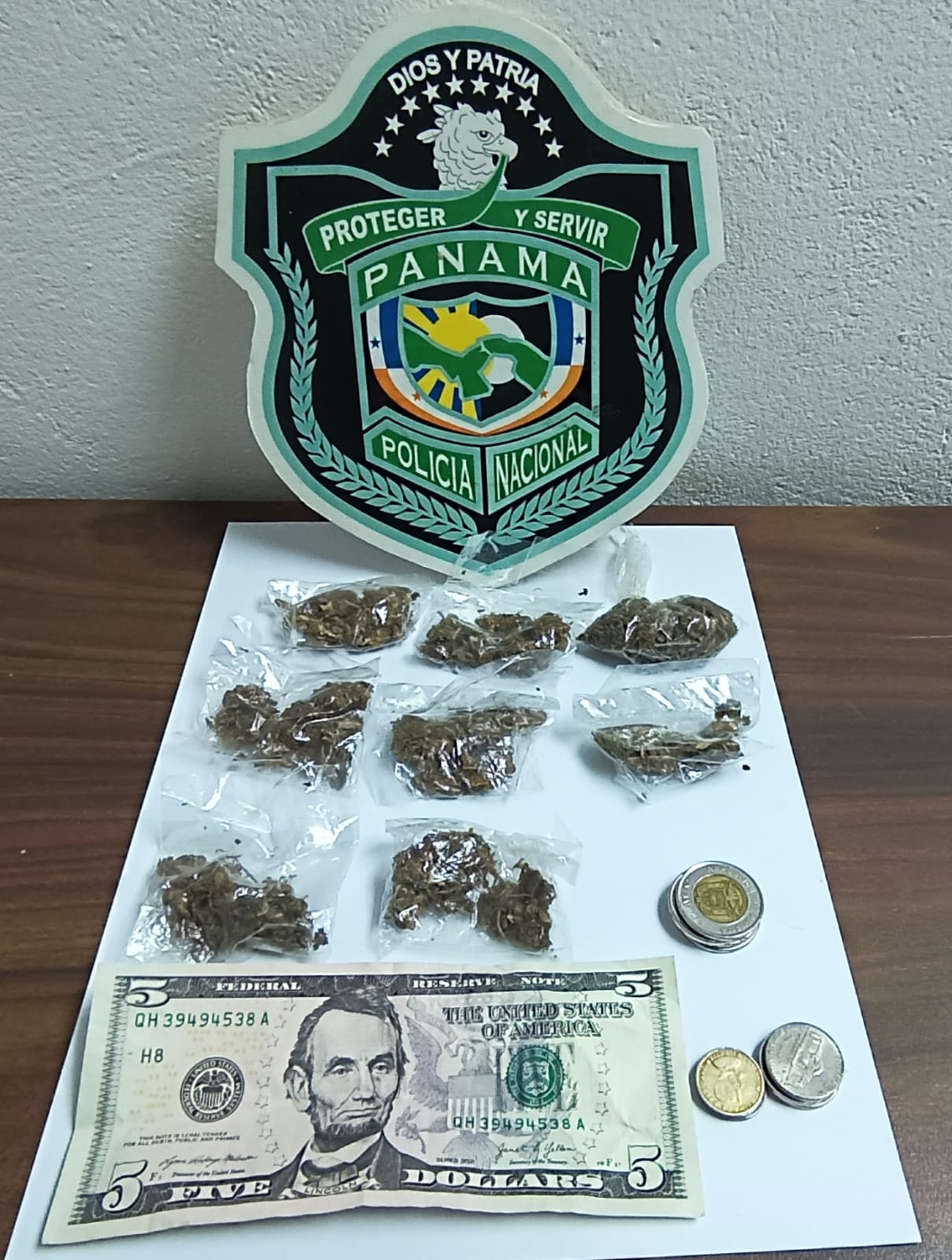 Durante actos de investigación por unidades policiales de la Dirección Nacional de Investigación Judicial en Calle H, del corregimiento Mateo Iturralde en el distrito de San Miguelito, se observa a un sujeto en actitud sospechosa quien al notar la presencia policial intenta darse a la fuga siendo retenido. En su revisión el mismo mantiene una bolsa de mano que en su interior mantiene 8 bolsas transparentes contentivas de hierba seca que se presume sea sustancia ilicita y dinero en efectivo. En coordinación con las autoridades judiciales se procede aprehender al hombre y decomisar los indicios para ser remitidos ante las instancias correspondientes por la presunta comisión de delitos relacionados con Drogas. |