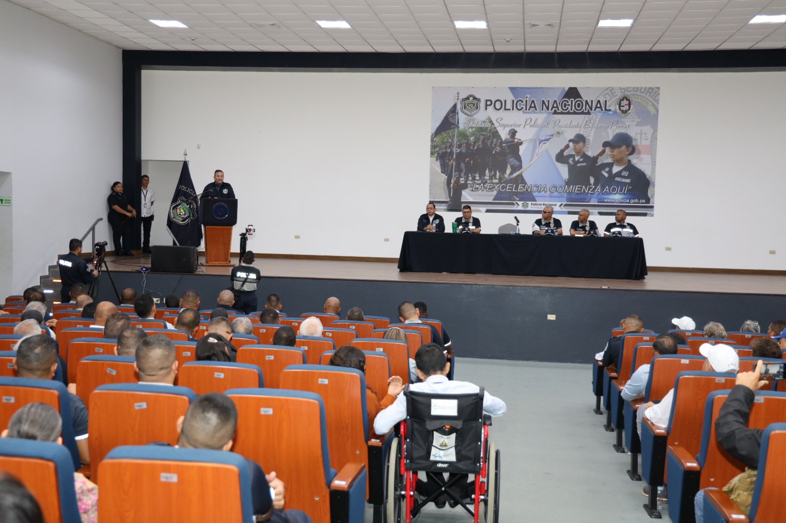 Con una línea de trabajo que busca consolidar el acercamiento con la comunidad mediante una Policía Nacional de puertas abiertas, el Director General, Jaime Fernández junto a su equipo de trabajo se reunió con los coordinadores y miembros de los programas Vecinos Vigilantes. Este encuentro realizado en el auditorio principal del ISPOL, deja claro la disposición de trabajar mancomunadamente por el bien común y coordinar estrategias para prevenir los delitos. El jefe policial atendió las inquietudes y recomendaciones de los miembros de las comunidades, quienes se mostraron interesados en conocer los nuevos planes enfocados en la prevención. “Los vecinos Vigilantes son pilares importantes en las estrategias de seguridad y prevención”, expresó el Director General, Jaime Fernández. Con ellos se acordó fortalecer Vecinos Vigilantes, con información oportuna, la comunicación fluida y otras acciones que permiten resultados positivos. Por su parte, líderes comunitarios como la señora Noris Camaño del Corregimiento de Ancón destacó el respaldo que la Policía necesita de los ciudadanos, clave en el éxito de los programas. Se tiene proyectado sumar más comunidades a Vecinos Vigilantes y otros programas de prevención que desarrolla la Policía Nacional; para ello, se están organizando varias actividades de integración y participación ciudadana. Esta dinámica se realizará con otros sectores, con el fin de que la comunicación sea permanente y darle seguimiento a los programas de prevención. |