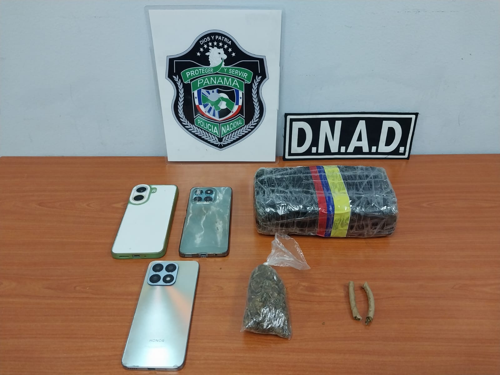 La Policía Nacional mediante acciones preventivas aprehende en flagrancia a tres personas con presuntas sustancia ilícitas. Esta acción policial se desarrolló en los predios de un Mall ubicado en el corregimiento Rufina Alfaro decomisando un paquete forrado con cinta adhesiva que se presume sea droga, un bolsita con hierba seca que se presume sea marihuana y tres celulares. La Policía Nacional continúa con estos operativos para sacar de las calles a los transgresores de la Ley. |