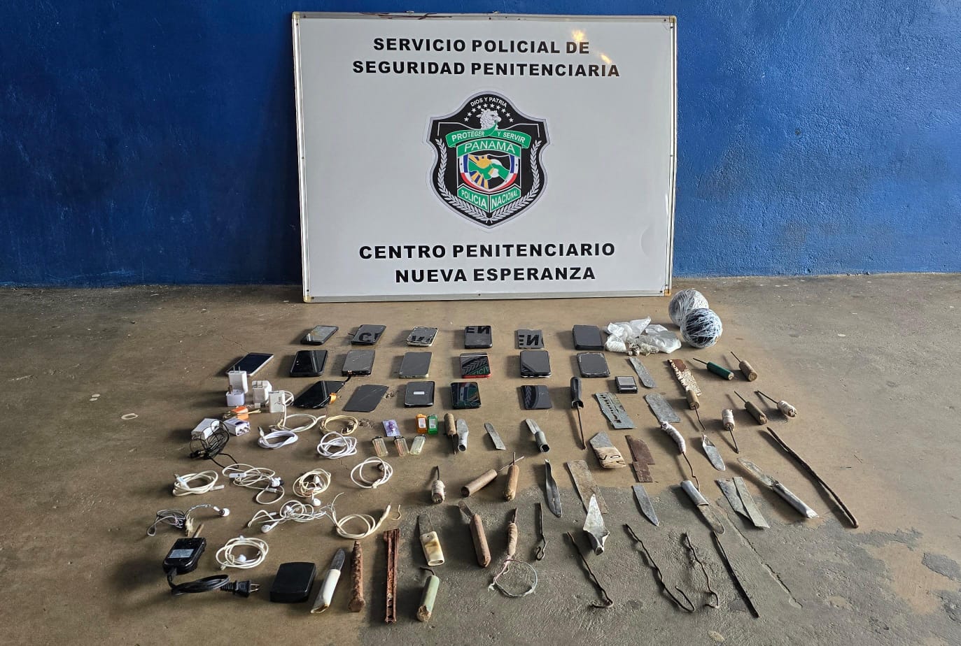 La Policía Nacional en coordinación con la Dirección General del Sistema Penitenciario y el Ministerio Público realizó el operativo de requisa Armagedón CL en el Centro Penitenciario Nueva Esperanza, en la provincia de Colón, donde se decomisan objetos punzocortantes, equipos tecnológicos y electrónicos. En la acción policial se ubican 21 platinas, un destornillado,13 encendedores, 13 adaptadores de cargador de celular, 15 celulares, 19 cables de USB, 9 auriculares, 2 audífonos inalámbricos y una pesa digital, un cable de video. Con estos operativos se busca mantener la convivencia pacífica además de detectar anomalías y evitar la introducción de artículos prohibidos dentro del penal. |