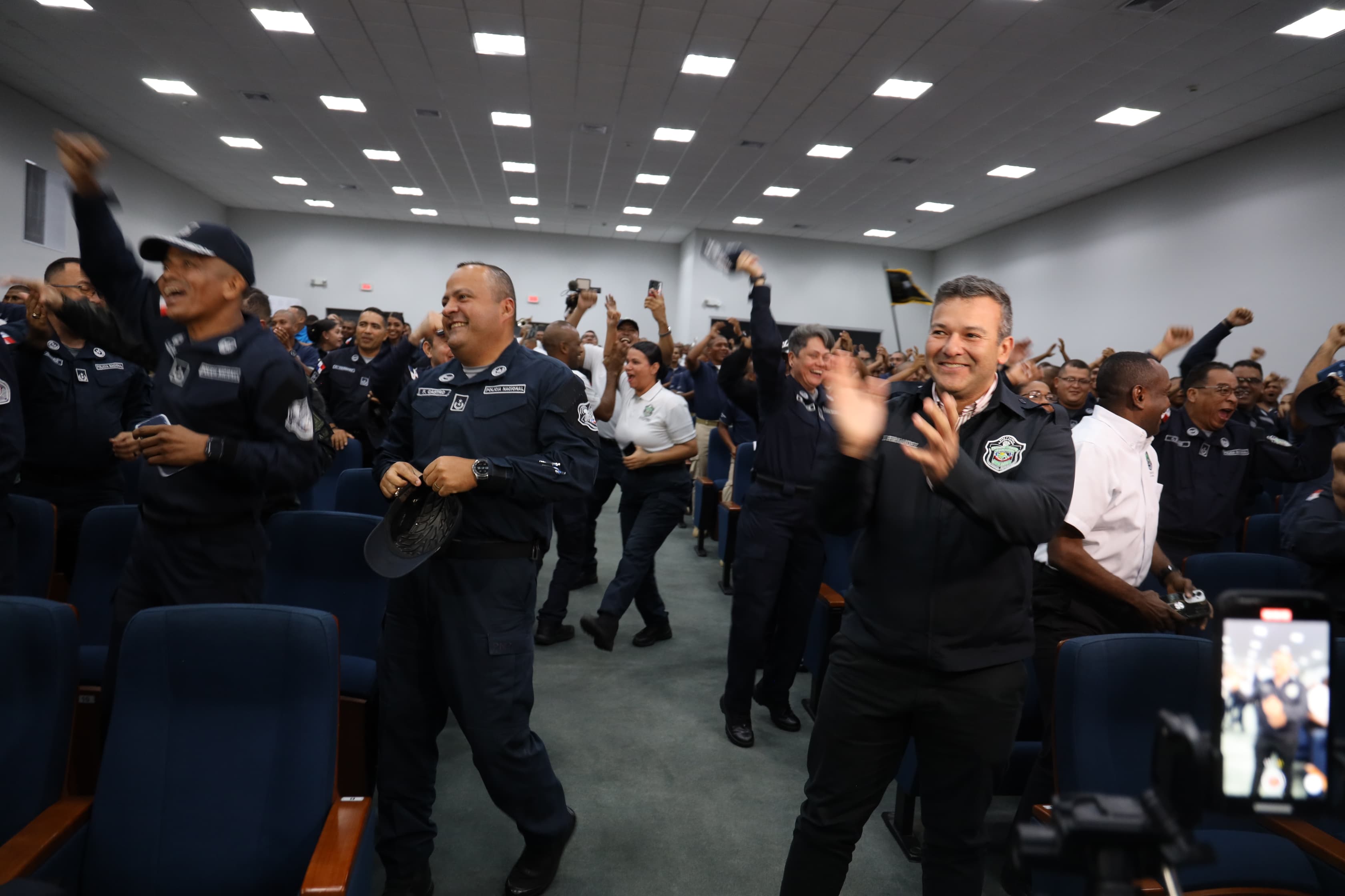 Un ambiente de camaradería, alegría, entusiasmo y respaldo fue lo que se vivió este jueves 8 de agosto en el Instituto Superior Policial, Doctor Belisario Porras en Gamboa, donde se dieron cita el Director General de la Policía Nacional, Jaime Fernández, miembros del Directorio Policial, uniformados y reclutas, para ver en pantalla gigante el encuentro boxístico de semifinales en las Olimpiadas Paris 2024 entre Atheyna Bylon boxeadora Olímpica, Sargento segundo de la Policía Nacional y la camerunesa Cindy Ngamba en la categoría de -75 kg del boxeo femenino.