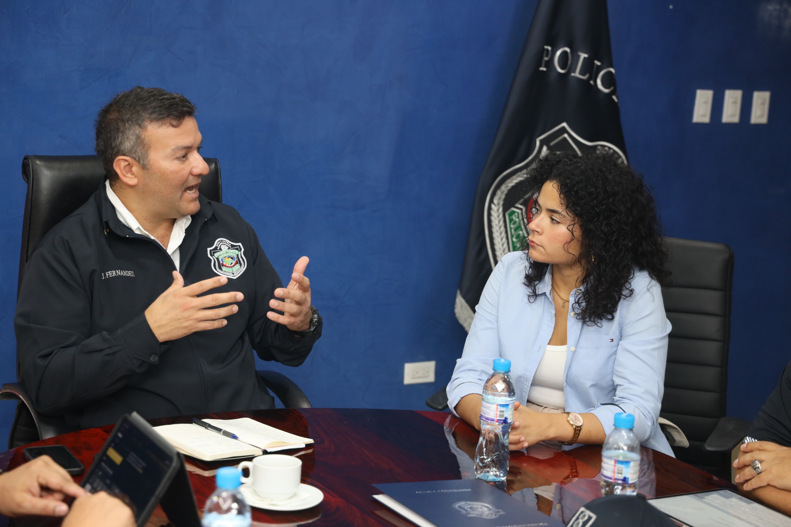 En un esfuerzo conjunto por mejorar la seguridad y el bienestar de la comunidad, el Director de la Policía Nacional, Jaime Fernández junto al Subdirector Jorge Domínguez se reunieron hoy con la Alcaldesa de San Miguelito, Irma Hernández para coordinar estrategias de seguridad en el salón Azul en la sede principal de la Policía Nacional en Ancón. Durante el encuentro, ambos líderes discutieron diversas iniciativas y estrategias para abordar los desafíos de seguridad que enfrenta el distrito. El Director de la Policía Nacional, Jaime Fernández, expresó su compromiso de reforzar la presencia policial en las áreas más vulnerables y de implementar nuevas estrategias que incluyen más patrullajes y vigilancia. “Estamos aquí para escuchar las necesidades de la comunidad y trabajar en soluciones efectivas que ayuden a reducir la criminalidad y aumentar la confianza de los ciudadanos hacia nuestra policía”, comentó.