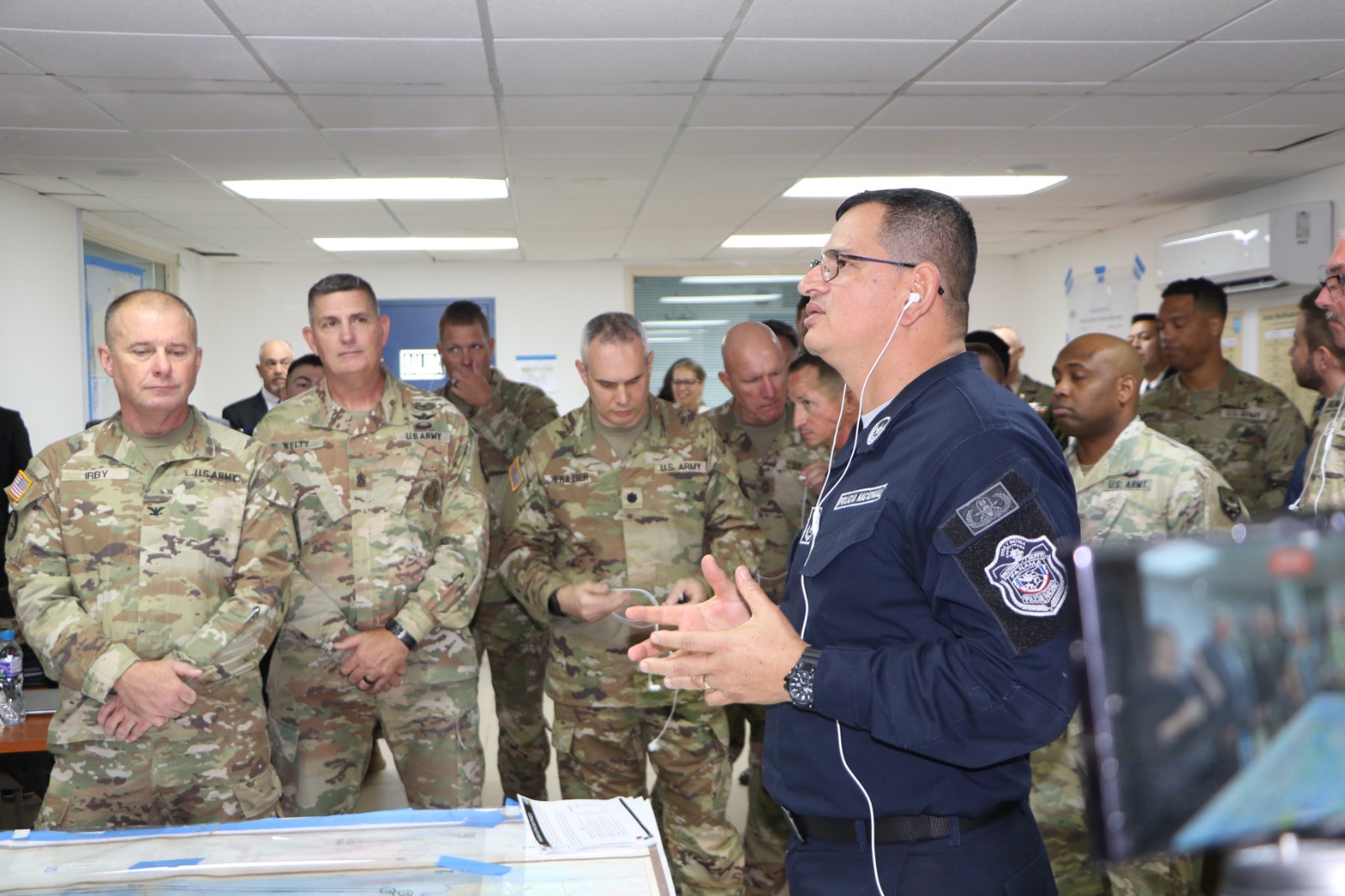 Los estamentos de seguridad, entre estos, la Policía Nacional mantienen las coordinaciones para la puesta en marcha del ejercicio PANAMAX ALPHA 2024, que se desarrolla en nuestro país con la colaboración del Comando Sur de los Estados Unidos. En la reunión de coordinación, se recibió la visita del Gobernador de Missouri, Mike Parson y el Mayor General de la Guardia Nacional del mencionado estado, Levon Cumpton, quienes conversaron con los uniformados sobre el plan a realizarse; a su vez, los felicitó por la labor en equipo que demuestran los lazos de cooperación y trabajo conjunto. El Comisionado Vasco Rodríguez, de la Policía Nacional, es el oficial encargado de supervisar y coordinar las acciones de los estamentos de seguridad de Panamá en el proceso de planificación, indicó que se trata de la fase 2 de la PANAMAX ALFA 2024. El ejercicio se lleva a cabo en fases de planificación y ejecución con diversas maniobras, como el abordaje de embarcaciones, el despliegue desde helicópteros y otras acciones. La participación en PANAMAX 2024 fortalece la preparación operacional y refuerza los vínculos con naciones aliadas con el objetivo de proteger la importante ruta comercial, el Canal de Panamá, ante posibles amenazas. |
