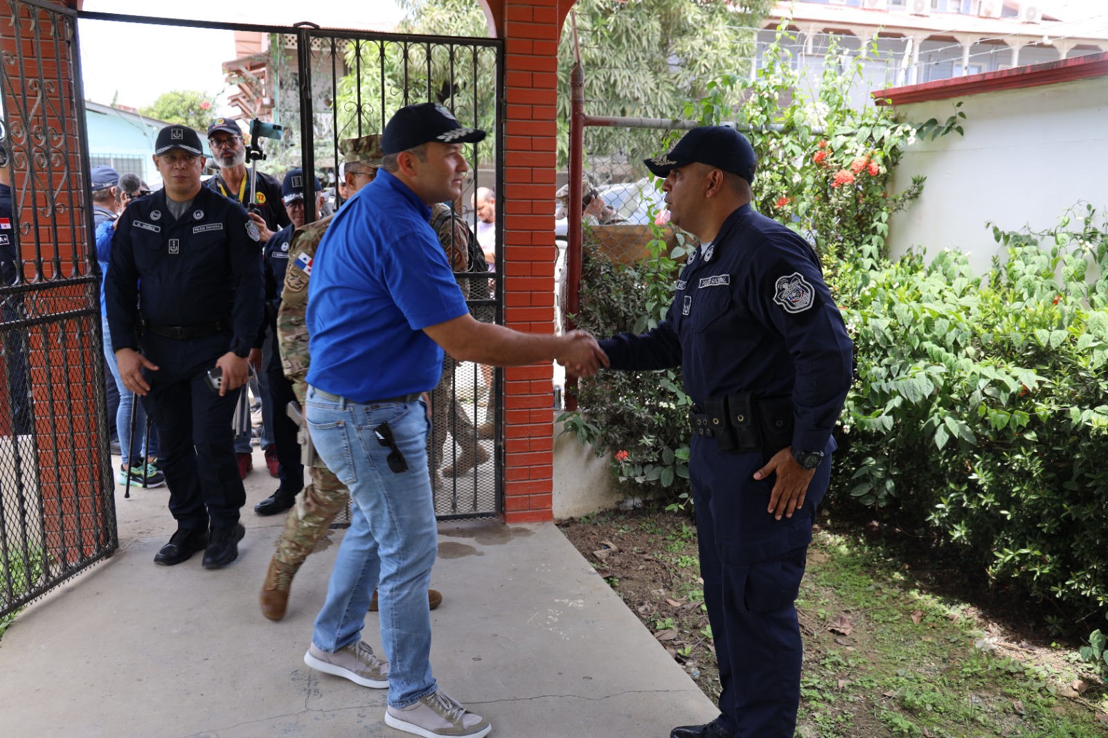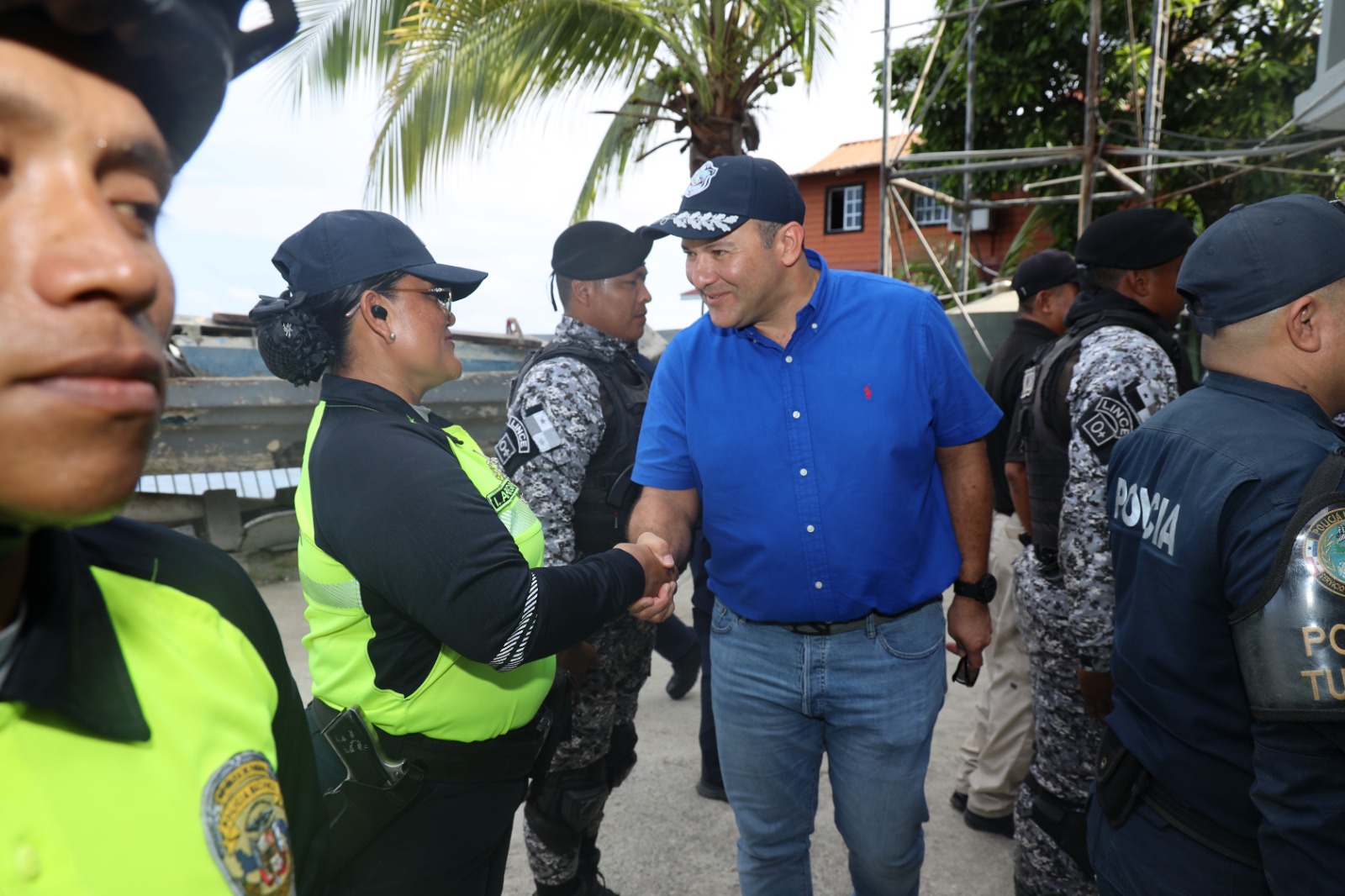 Más de 30 personas entre comerciantes, representantes de hoteles, líderes comunitarios, se reunieron con el Señor Jaime Fernández Director General de la Policía Nacional, el Subdirector General Comisionado Jorge Domínguez junto a su equipo de trabajo y el Director del SENAN que participaron en la gira, de trabajo en Isla Colón, provincia de Bocas del Toro, donde presentaron las acciones operativas y preventivas previamente desarrolladas. En esta reunión también asistieron las autoridades competentes de la región bocatoreña, "una joya turística del país" indicó el Director Fernández. El Director Fernández informó a la comunidad sobre el incremento de las unidades de la Policía Nacional hacia Isla, así como la dotación de motocicletas y mejoras de las instalaciones policiales con la misión de optimizar el servicio policial en estas islas y en todos los sectores de la provincia. Asimismo el Director Policial exhortó a las unidades policiales a reforzar y reafirmar con eficacia su compromiso institucional para con ciudadanía en general. La Policía Nacional refuerza, los operativos y patrullajes con la misión de mantener la seguridad, la paz y el orden para la población en general, así como también a los extranjeros que residen y visitan Bocas del Toro. |