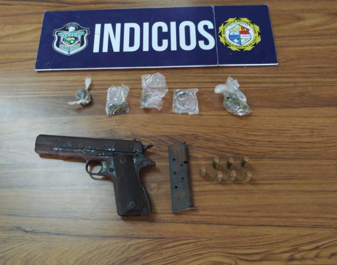 En la diligencia se ubica un arma de fuego con su respectivo proveedor y municiones, además de envoltorios contentivos de presuntas drogas, siendo remitidos a órdenes de las autoridades judiciales junto al aprehendido.