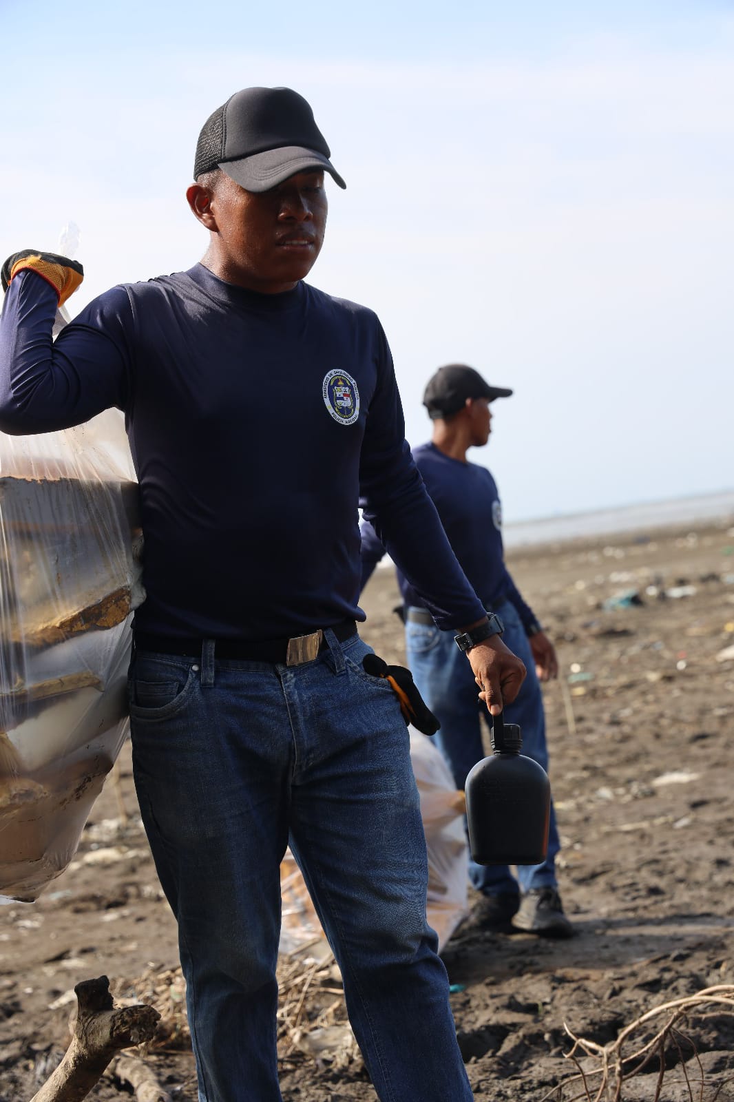 Más de mil unidades de la Policía Nacional participan en la jornada de limpieza por las playas, costas y demás afluentes hidrícos, localizados en diferentes provincias del país, con la misión de salvaguardar y proteger la conservación de los océanos y el ecosistema ecológico. El Director General de la Policía Nacional, Jaime Fernández junto a las autoridades de Ministerio de Mi Ambiental y la Autoridad de Aseo estuvieron presente en estas actividades de limpieza junto a las unidades policiales en las costas de la Bahía de Panamá, exhortando a la ciudadanía en general para preservar la biodiversidad en las playas y en los humedales. La Policía Nacional continúa garantizando la protección del ambiente, y al pendiente de los riesgos ecológicos vinculados a los desechos sólidos lanzados a las playas. |