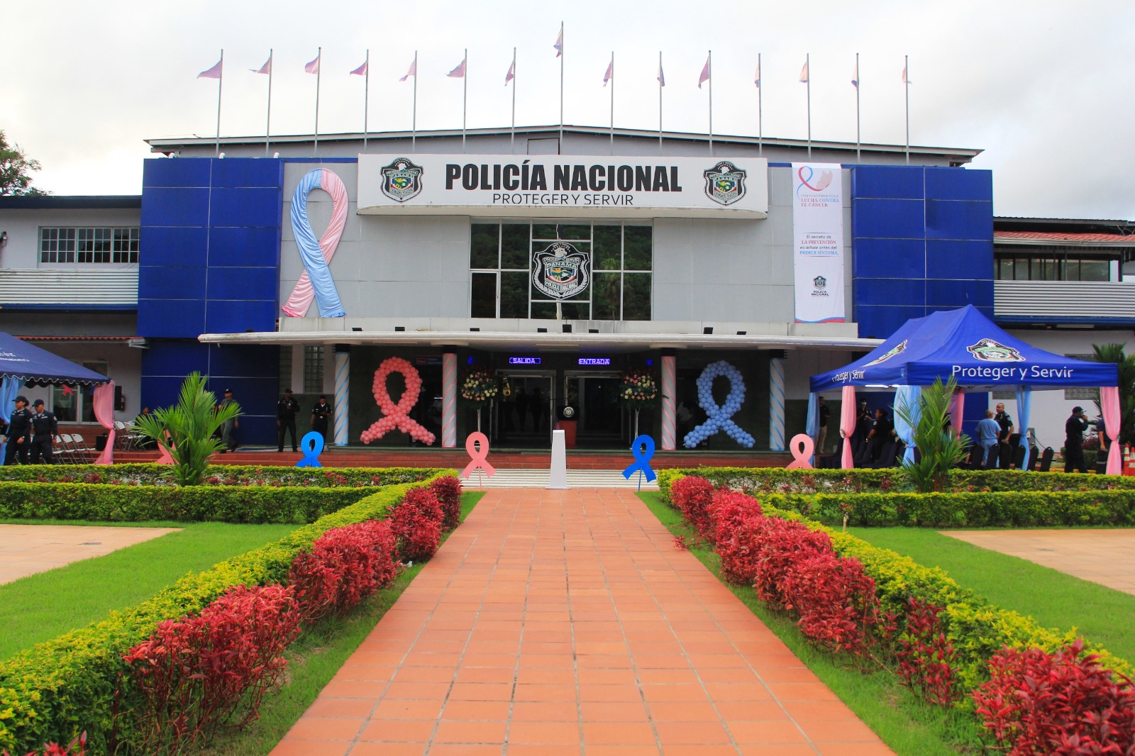 En el marco del mes de la sensibilización sobre el Cáncer de mama y próstata, la Policía Nacional se une a la campaña de la Cinta Rosada y Celeste , bajo el lema “Con Paso Firme en la lucha contra el cáncer” realizando encendido de luces en su sede principal ubicada en el corregimiento de Ancón.