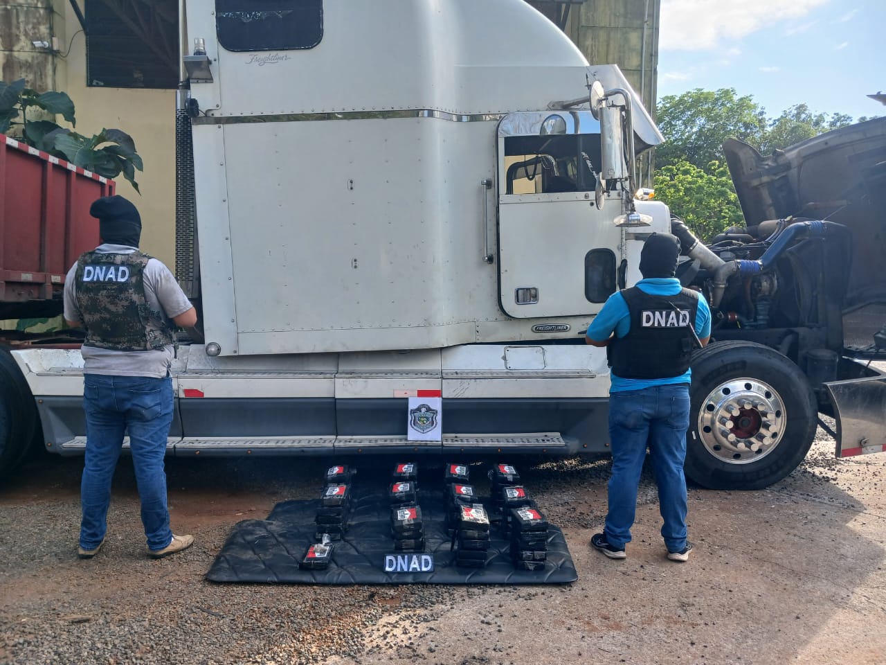 En una operación contra el narcotráfico, unidades policiales lograron el decomiso de 56 paquetes de presuntas drogas ocultos en un compartimiento de un camión articulado, en el distrito de Tolé, corregimiento de Quebrada de Piedra, provincia de Chiriquí.