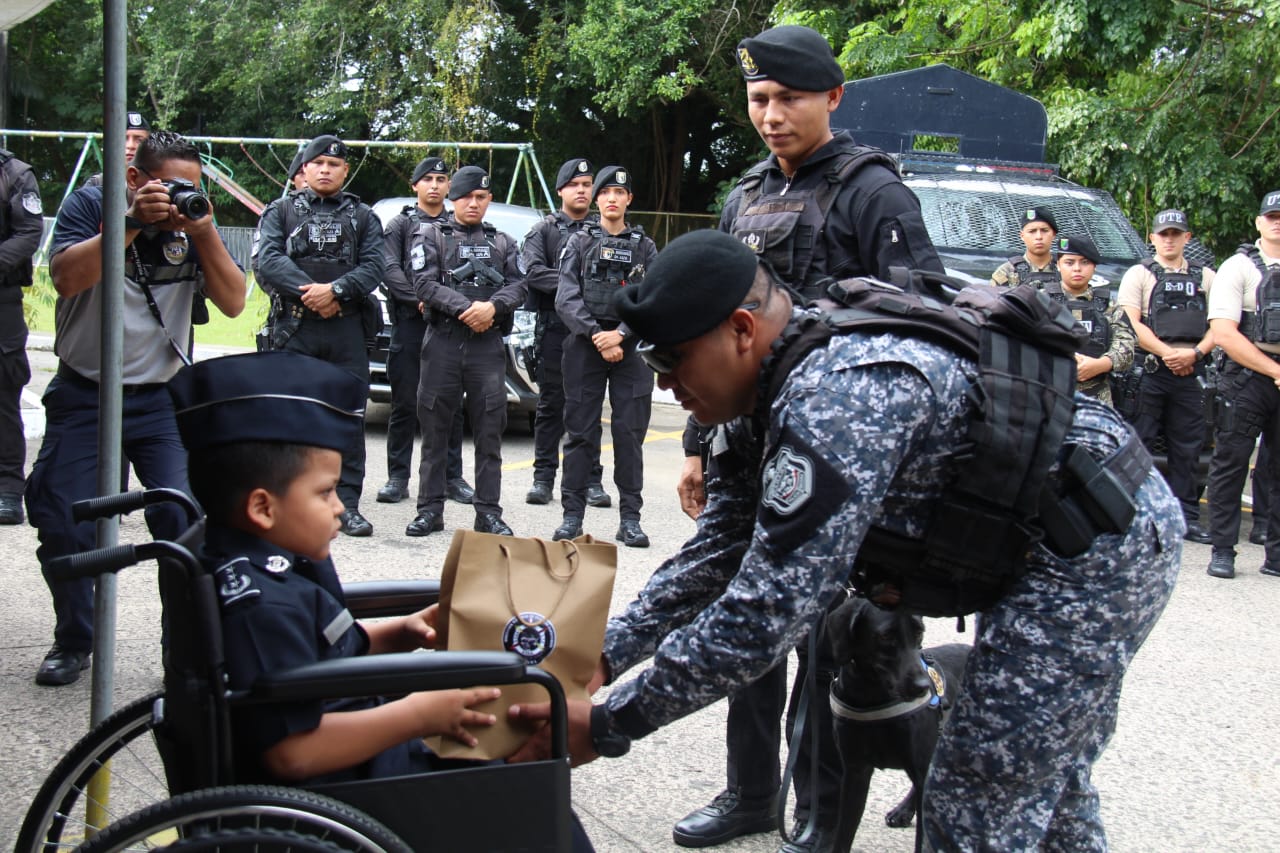 Desde su rol como Embajador Estrella, Dylan se ha destacado por su labor de sensibilización en favor de las personas con discapacidad, transmitiendo un mensaje de inclusión y solidaridad. Sin embargo, su vocación por servir a su comunidad no se limita, sino que va más allá: su sueño de ser policía siempre estuvo presente en su corazón. Hoy, con alegría, cumple su sueño. A bordo de un auto patrulla, vestido con su uniforme y junto a su familia, fue recibido en la sede de la Zona Policial del Canal, por una calle de honor realizada por los cadetes de la Escuela de Oficiales, Doctor Justo Arosemena, seguidamente atendido por el director general de la Policía Nacional, Jaime Fernández, el subdirector, Jorge Domínguez y miembros del Directorio, en un emotivo acto. Visiblemente emocionado, Dylan, dio la voz de mando a las unidades en formación y posteriormente, recibió obsequios por parte de los diferentes servicios policiales. Este nombramiento como Policía Honorario es solo un capítulo más en la inspiradora historia de Dylan, quien continúa demostrando que, sin importar la edad o las circunstancias, todos podemos hacer una diferencia en nuestra sociedad. |