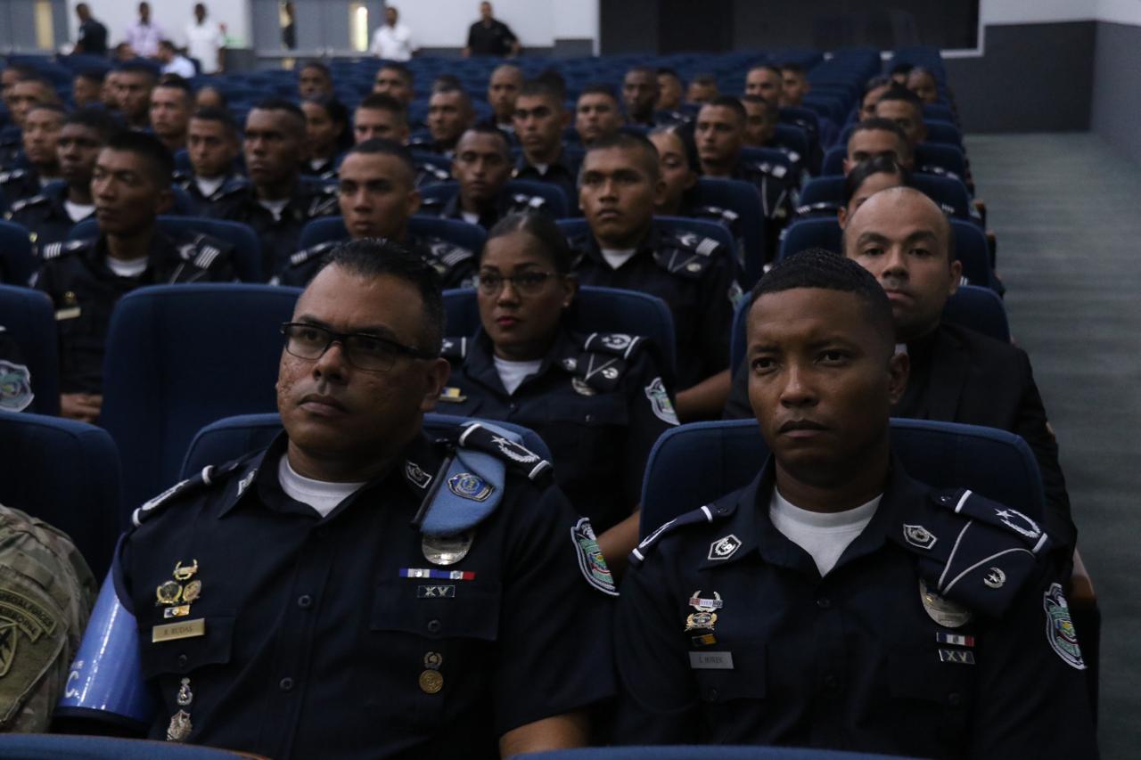 Cumpliendo con el objetivo de Plan Firmeza, La Policía Nacional clausuró el Diplomado en Estrategias de Policía de Proximidad para la prevención de la violencia y gestión de la convivencia comunitaria, así como también la clausura del primer curso de seguridad ciudadana y el curso de intercambio técnico de asuntos civiles. Estos diplomados fueron auspiciados por la Embajada de los Estados Unidos de América a través del equipo de asuntos civiles donde se beneficiaron 39 estudiantes de la escuela de oficiales (Esopol) y 54 unidades de la Unidad Preventiva Comunitaria (UPC). La Institución Policial le agradece a la Embajada de los Estados Unidos, por impartir sus conocimientos desde septiembre del 2024 hasta marzo del 2025 con estos curso puntuales en materia de seguridad ciudadana y unidad de policía comunitaria, lo cual nos permitió tener a 93 personas preparadas y actualizadas en materia de seguridad preventiva. Con estas capacitaciones que se realizan de manera constante, los policías reciben las herramientas necesarias para ofrecer un servicio de calidad a la comunidad. |