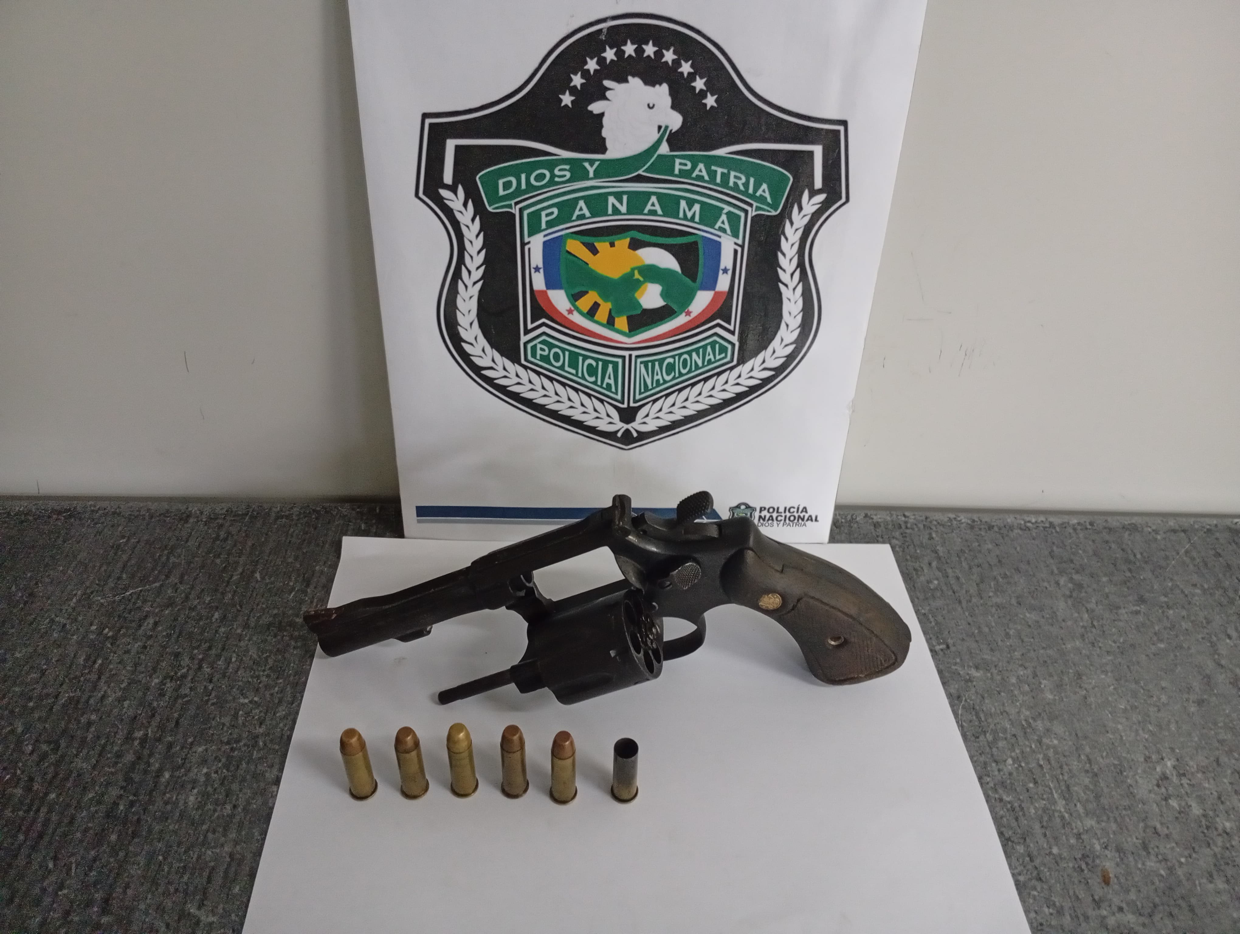 Unidades policiales mediante recorrido preventivo, dan con la aprehensión de un ciudadano de 28 años, el cual mantenía en su poder un arma de fuego calibre 38, con cinco municiones en el corregimiento de Arnulfo Arias Madrid, sector de la 4 etapa de Mano de Piedra, Calle Esperanza.