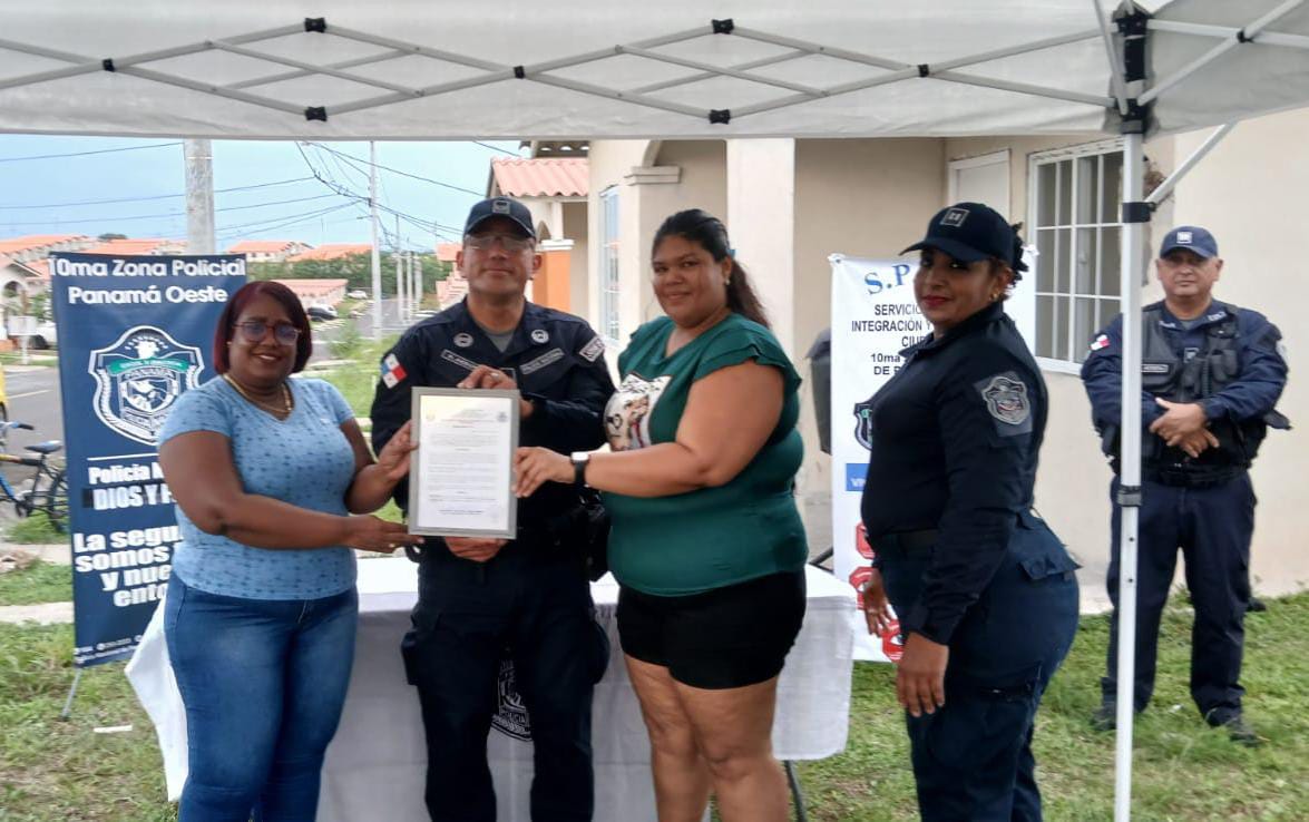 La Policía Nacional en coordinación activa junto a los líderes comunitarios del Residencial de Altos de Las Praderas, en el corregimiento de Playa Leona, por La Chorrera, fortalecieron las estrategias preventivas para prevenir delitos y situaciones de riesgos en sus comunidades. Con la implementación del Programa No. 116 de Vecinos Vigilantes esta comunidad sella la alianza ciudadana, con la misión de sumar esfuerzos para beneficio de la sana convivencia y el orden. La Policía Nacional y las comunidades organizadas en los programas de seguridad preventiva de Panamá Oeste exhortan a otros sitios del país a sumarse a las estrategias comunitarias dirigidas a la seguridad integral, fundamentadas en los lineamientos del Plan Firmeza. |