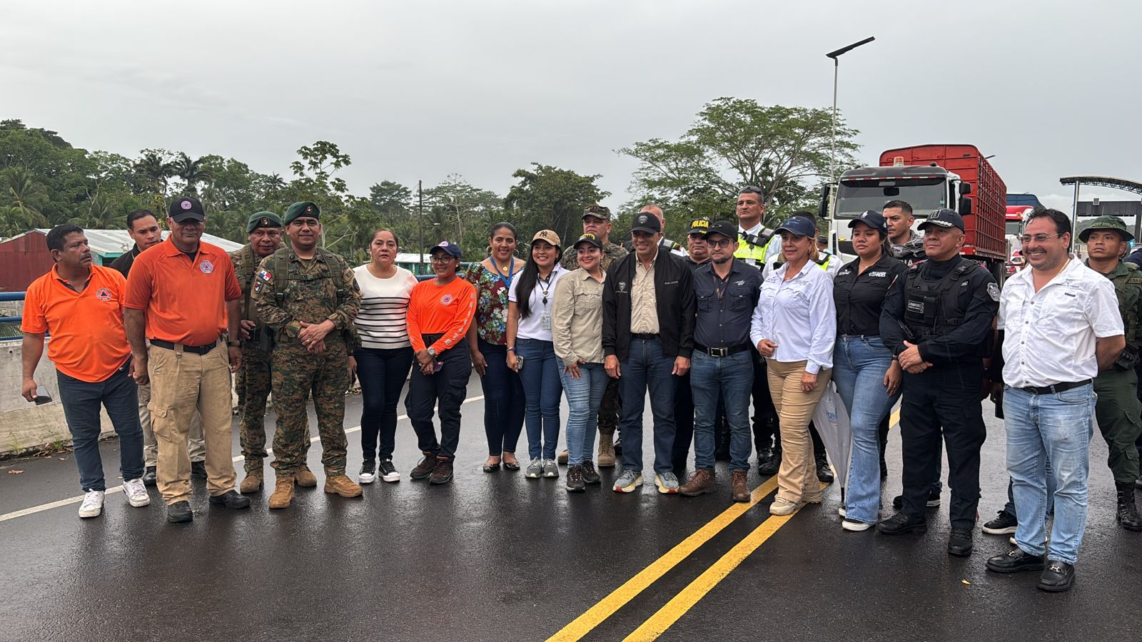 Gracias a la gestión binacional de Panamá y Costa Rica llegó la ayuda humanitaria a la provincia de Bocas del Toro, a través de un convoy, el cual avanzó satisfactoriamente hacia el sector de Guabito, distrito de Changuinola. El convoy ha traslado unas 250 toneladas de mercancías y alrededor de 85 vehículos articulados, camiones con combustible, suministros, alimentos, tanques de gas, mercancías para locales comerciales y demás enseres logísticos que permiten el abastecimiento para la población de Bocas del Toro, gracias al trabajo en conjunto con los organismos de seguridad e instituciones del Estado Panamá y de Costa Rica, indicó el Director General de la Policía Nacional, Jaime Fernández, durante la conferencia de prensa sobre el Balance de la Operación Omega, en Bocas del Toro. Por su parte, el Subdirector General de la Policía Nacional, Jorge Domínguez acompañó la comitiva conformada por el Embajador de Panamá en Costa Rica, señor Pacífico Escalona, la Gobernadora de Bocas del Toro, licenciada Marcela Madrid, el comisionado José Córdoba de Senafront entre otras autoridades de las Instituciones del Estado. |