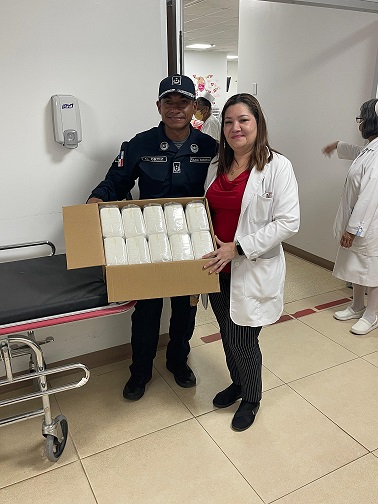 De igual manera, se donó una caja con 200 unidades de pampers a la jefa médica de este nosocomio, quien agradeció a la Policial Nacional por su noble gesto.