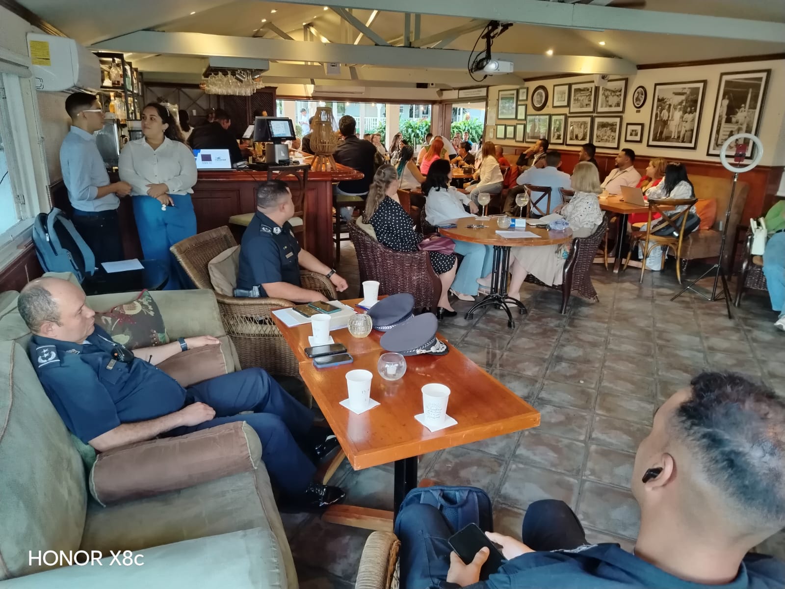 La Policía Nacional sostuvo una reunión con miembros de la Cámara de Comercio, Industrias, Agricultura y Turismo de Boquete para coordinar acciones que refuercen la seguridad ciudadana en el distrito. El encuentro se llevó a cabo en un restaurante local y contó con la participación del subcomisionado Armodio Cortéz y su equipo de oficiales. Durante la reunión, el capitán Felicito Gutiérrez presentó las estrategias de seguridad implementadas en la zona. Además, se promovió el intercambio de contactos directos entre empresarios y oficiales, con el fin de mejorar la comunicación ante posibles incidentes delictivos.