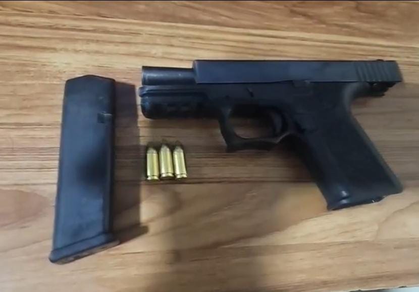 Al momento de llegar, los sujetos fueron sorprendidos arrojando un arma de fuego 9 milímetro al pavimento.