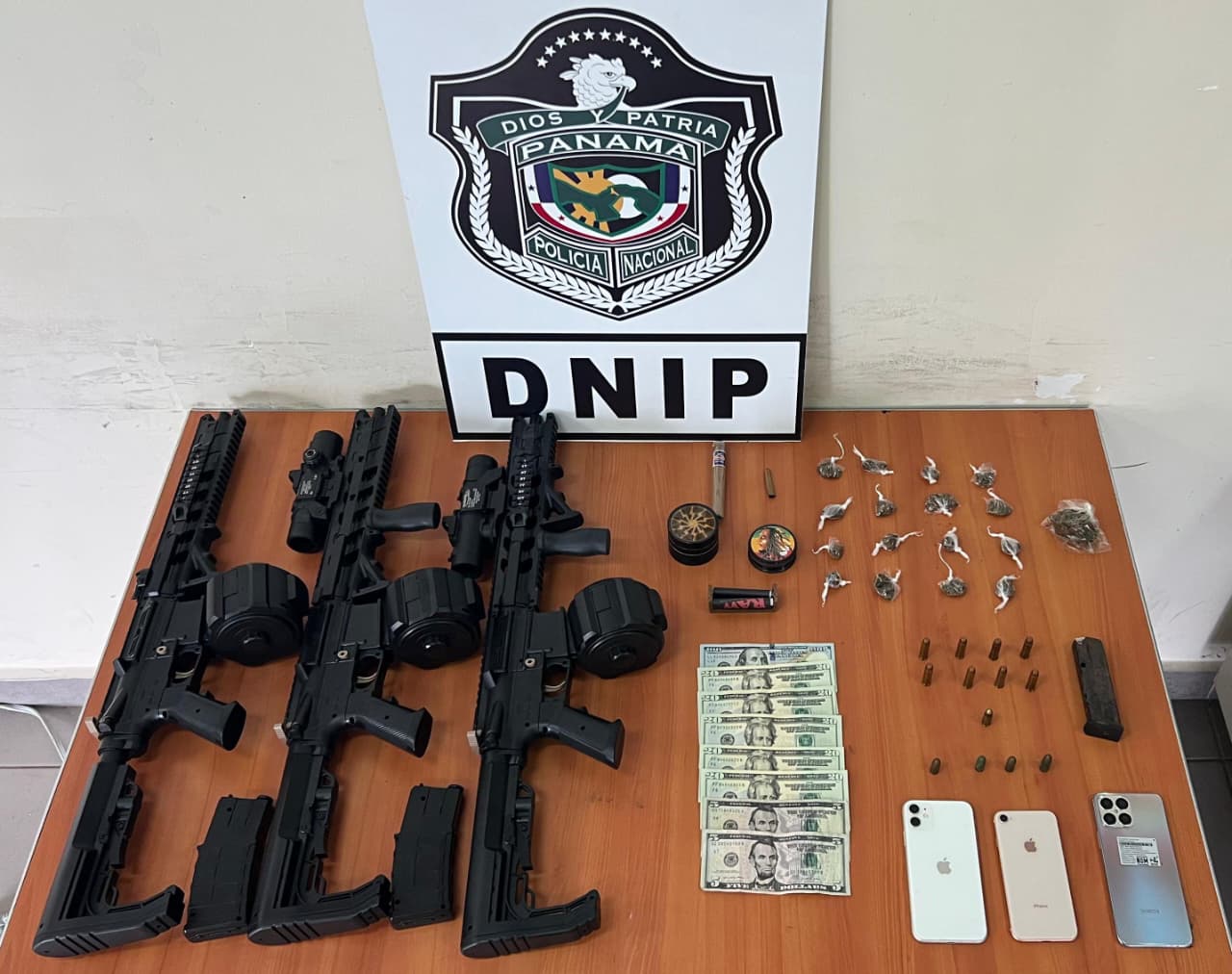 La Policía Nacional, a través de una diligencia de allanamiento y registro, decomisó tres réplicas de arma de fuego y aprehendio a un ciudadano de 38 años en Puerto Pilón, provincia de Colón. Durante la operación, dentro de la residencia, también se encontró un proveedor, supuesta sustancias ilícitas y dinero en efectivo. Tanto las evidencias como el aprehendido fueron puestos a disposición de las autoridades competentes para los trámites legales correspondientes. |