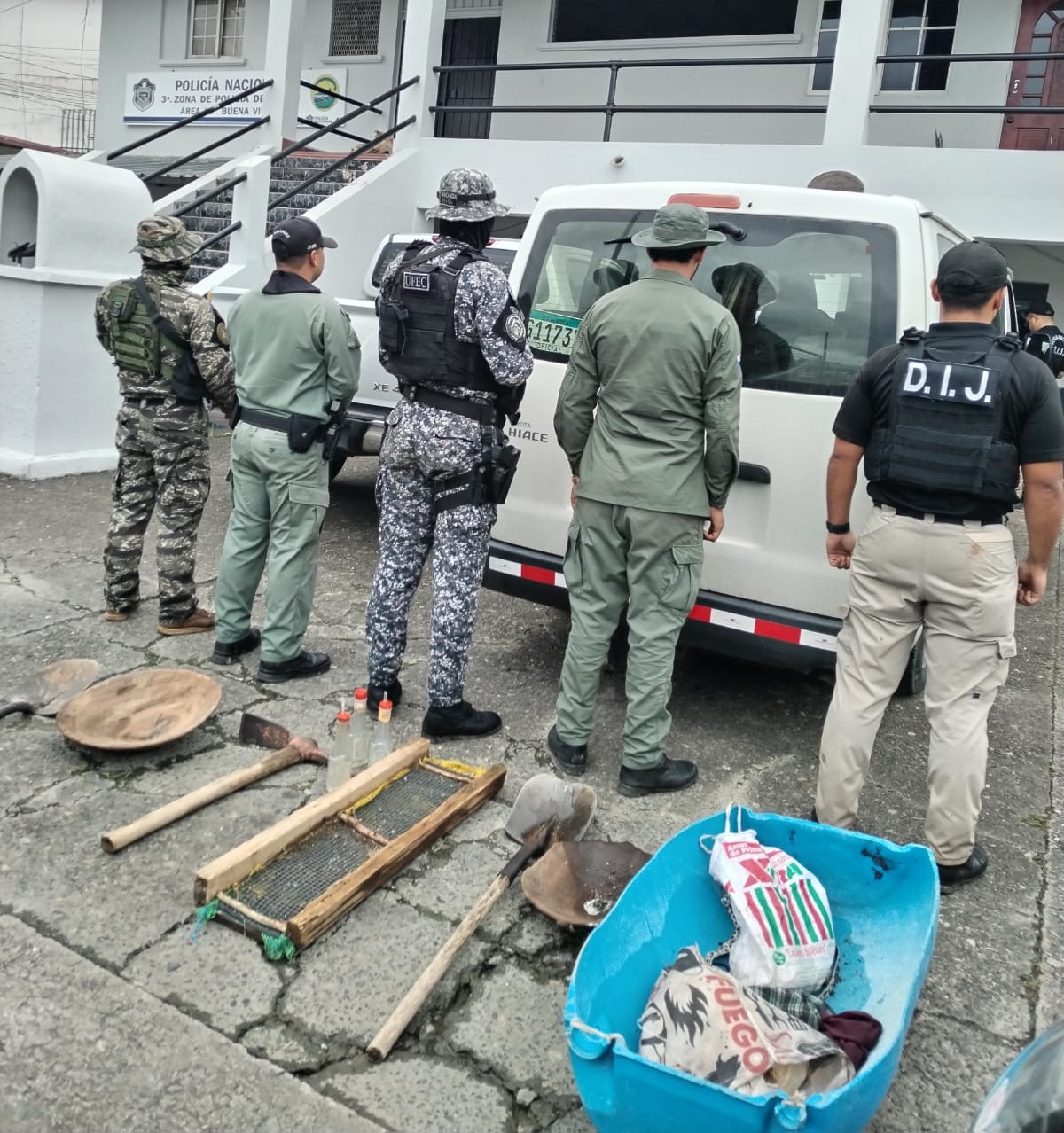 Durante esta acción operativa, fueron decomisadas bateas de madera, palas, piquetas y envases con fragmentos de metal dorado, elementos presuntamente utilizados para la práctica de minería ilegal en la zona protegida. Tanto los indicios como los aprehendidos fueron remitidos a las autoridades competentes para el proceso legal y administrativo correspondiente. La Policía Nacional reafirma su compromiso con la protección de los recursos naturales, combatiendo toda actividad que provoque daños ambientales, como la contaminación de cuerpos de agua, la degradación del suelo y la pérdida de biodiversidad. |