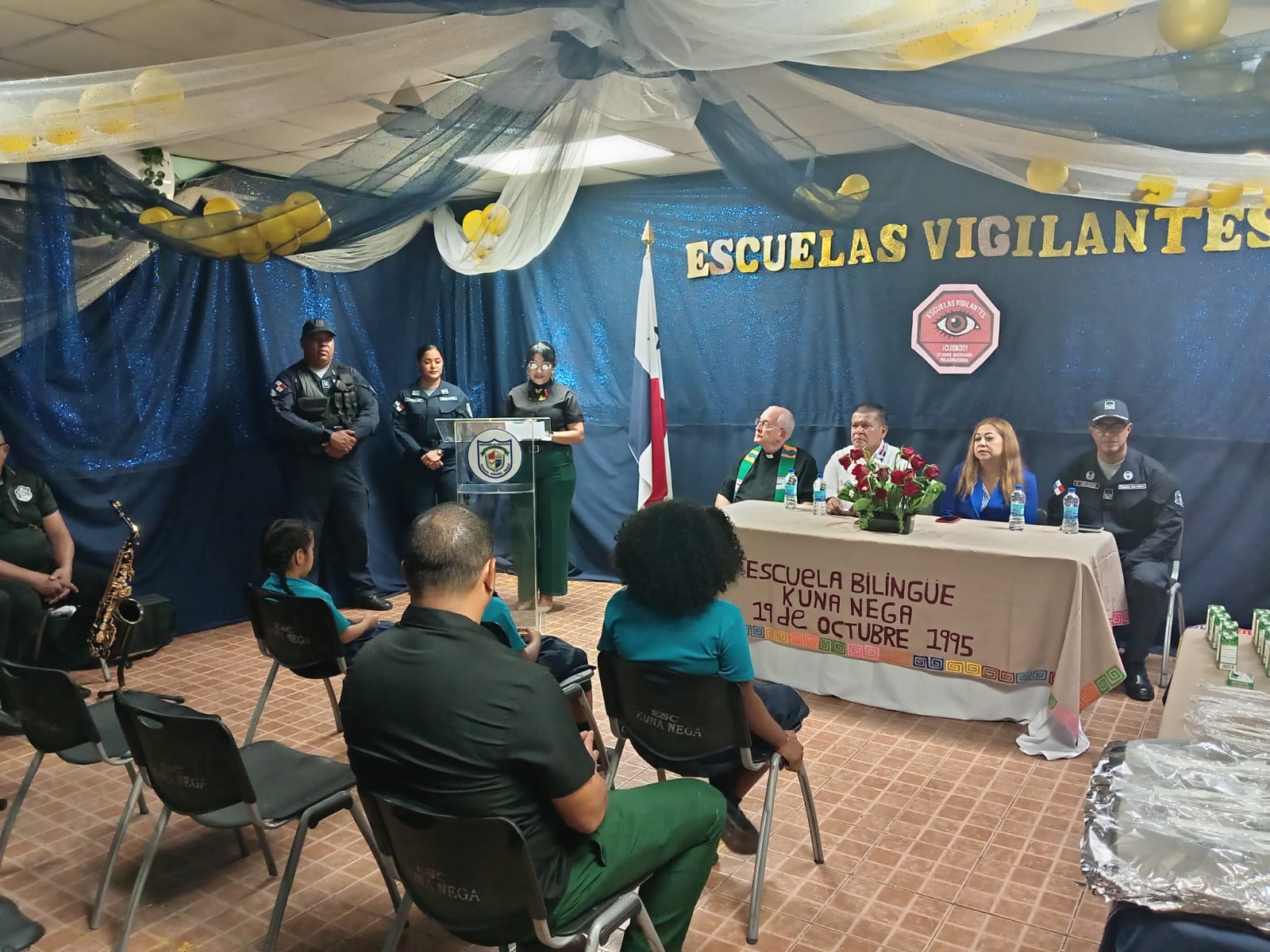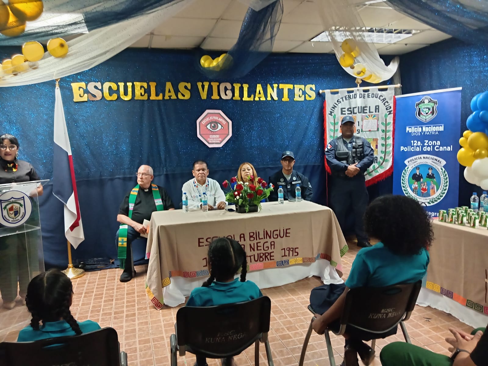 En un esfuerzo por fortalecer la seguridad y fomentar la participación comunitaria en los entornos escolares, la Policía Nacional de Panamá, a través de su Servicio Policial de Niñez y Adolescencia, realizó este lunes el acto de inauguración del programa preventivo “Escuelas Vigilantes” en la Escuela Bilingüe Kuna Nega, ubicada en el sector de Guna Nega.