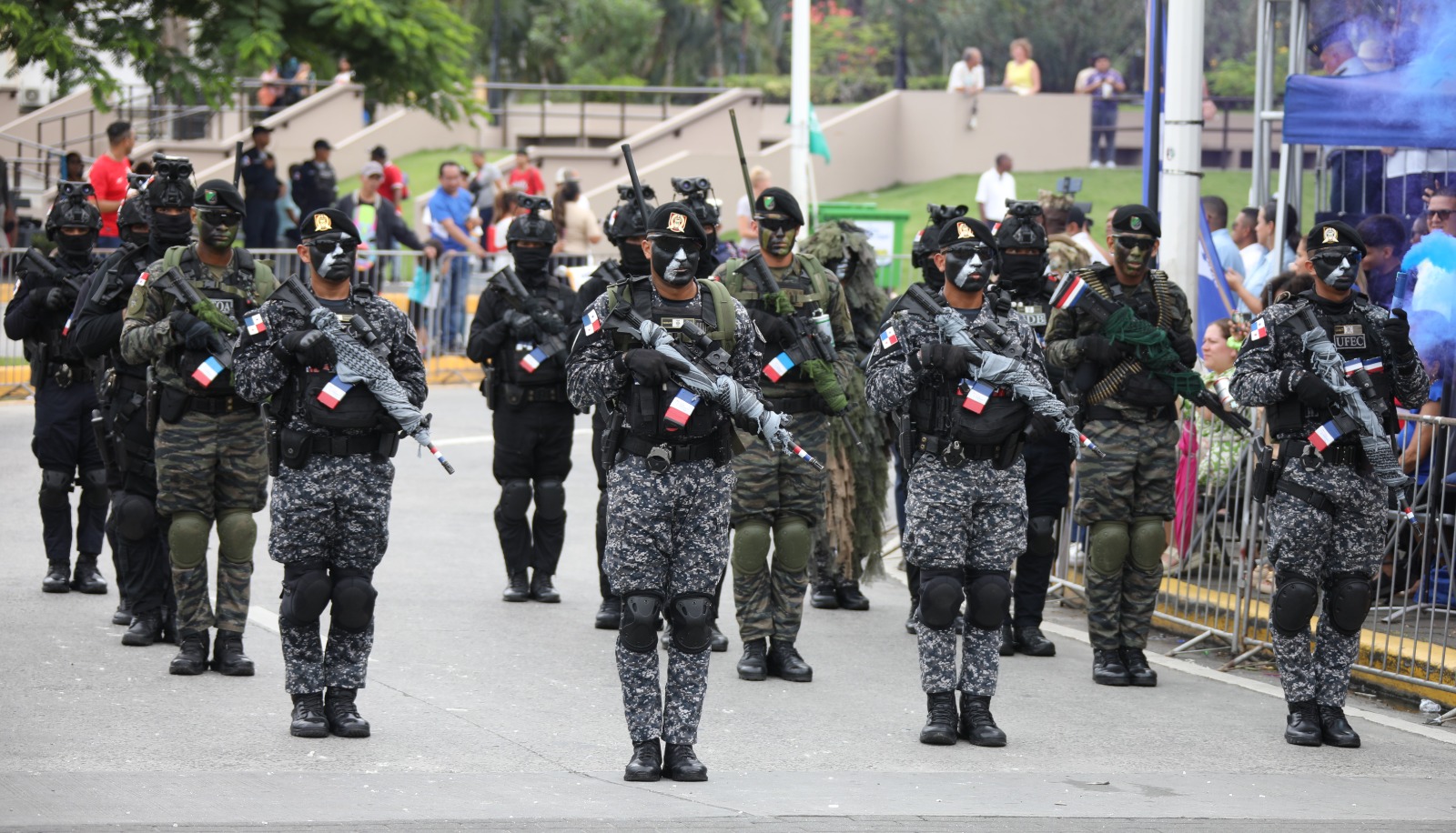 Con orgullo, la Policía Nacional presentó su delegación, conformada por 417 hombres y mujeres que simbolizan el compromiso, la disciplina y la vocación de servicio que la caracterizan. La delegación, integrada por la Dirección Nacional de Operaciones de Tránsito, la Banda de Música, la Plana Mayor, la Escolta de Banderas, la Delegación de Banderines, el Pelotón Femenino, el Servicio Policial Ambiental, Rural y Turístico, la Unidad de Fuerza Urbana de Rápida Intervención, la Unidad de Control de Multitudes, la Dirección Nacional de Fuerzas Especiales, la Escuela de Oficiales de Policía “Doctor Justo Arosemena” y el Servicio Policial Motorizado, desfiló con gallardía en honor a la Patria. Bajo el mando del subcomisionado Michael Cueto, esta representación institucional reflejó el honor, la entrega y el orgullo de servir a la nación. |