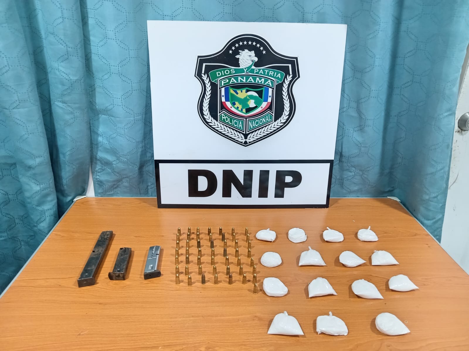 En otro punto, los uniformados encontraron 15 bolsitas plásticas que contenían polvo blanco (cocaína), además de 48 municiones y tres proveedores, lo que sugiere un posible vínculo con actividades criminales relacionadas con el tráfico de drogas y armas.