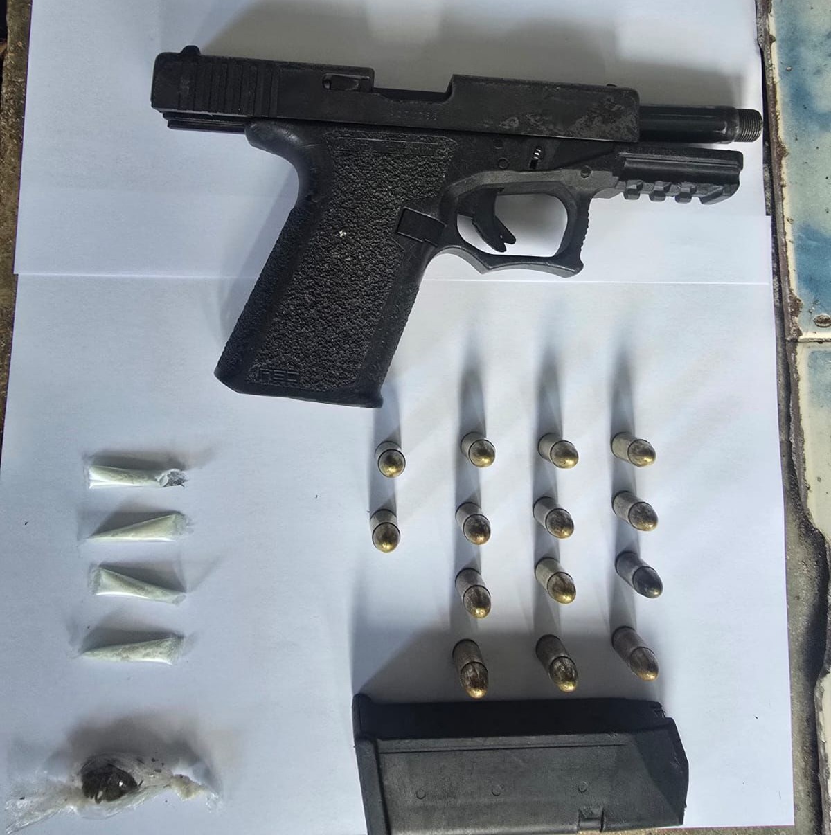 Al llegar al lugar, las unidades policiales observaron a un sujeto, quien, al notar la presencia policial, intentó darse a la fuga, arrojando un bolso negro en su trayecto. El cual, al ser inspeccionado, contenía, además del arma, proveedores y municiones, junto con cuatro carrizos plásticos con polvo blanco y un envoltorio con hierba seca, presuntamente sustancias ilícitas. Tanto el detenido como los indicios fueron puestos a disposición de las autoridades competentes para el trámite legal correspondiente. |