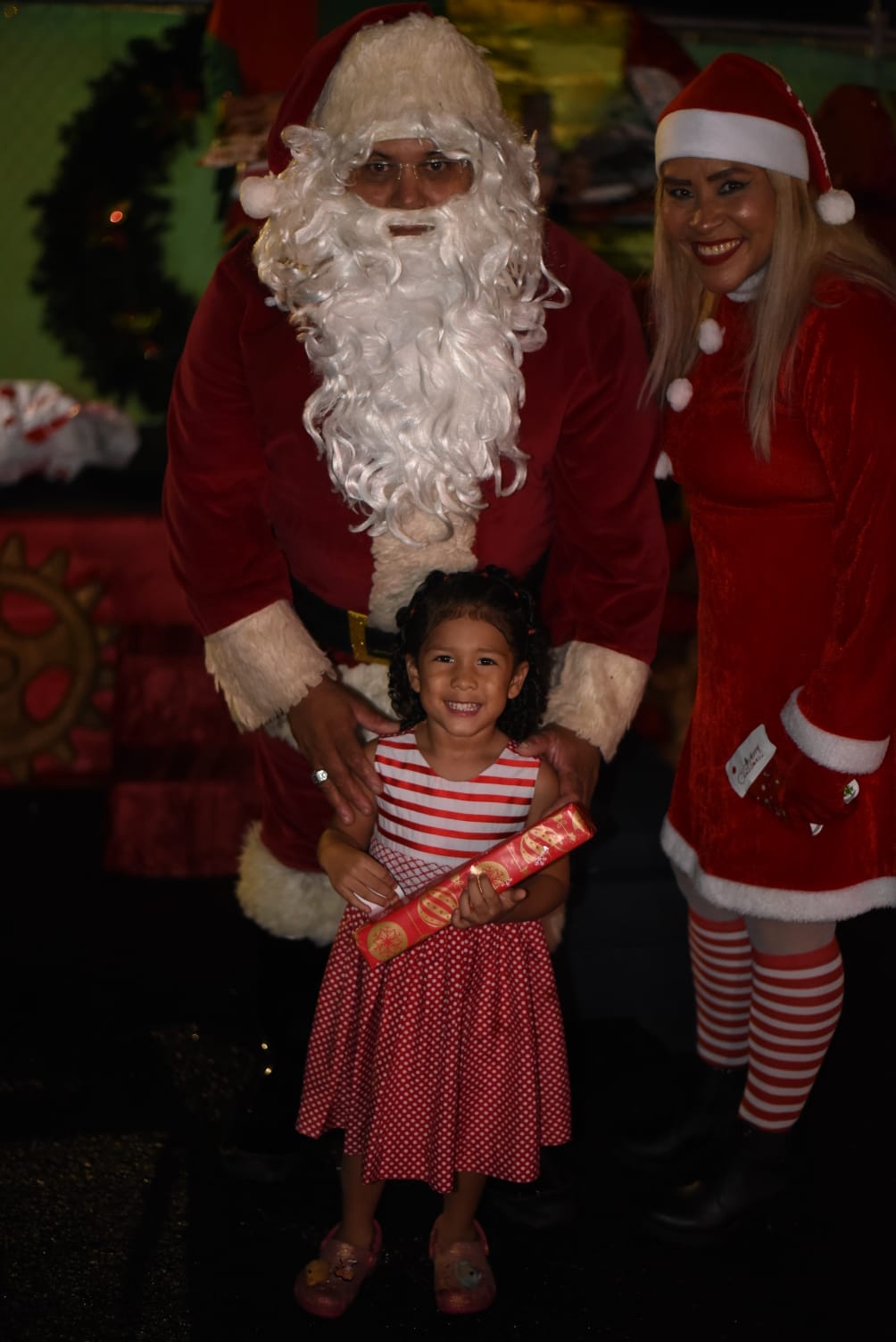 Los presentes se deleitaron con los villancicos que entonó la banda de música del centro educativo Residencial Vista Alegre, de la magia del mago, además de confites, piñatas y de pronto, entre risas y magia. Santa acompañado de Mamá Claus, sus duendes y todo su encantador elenco para llenar de ilusión esta noche especial