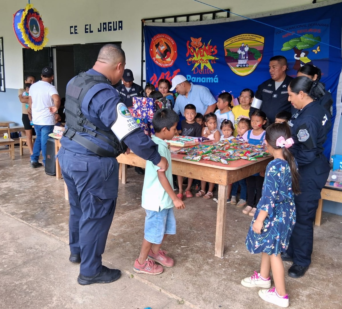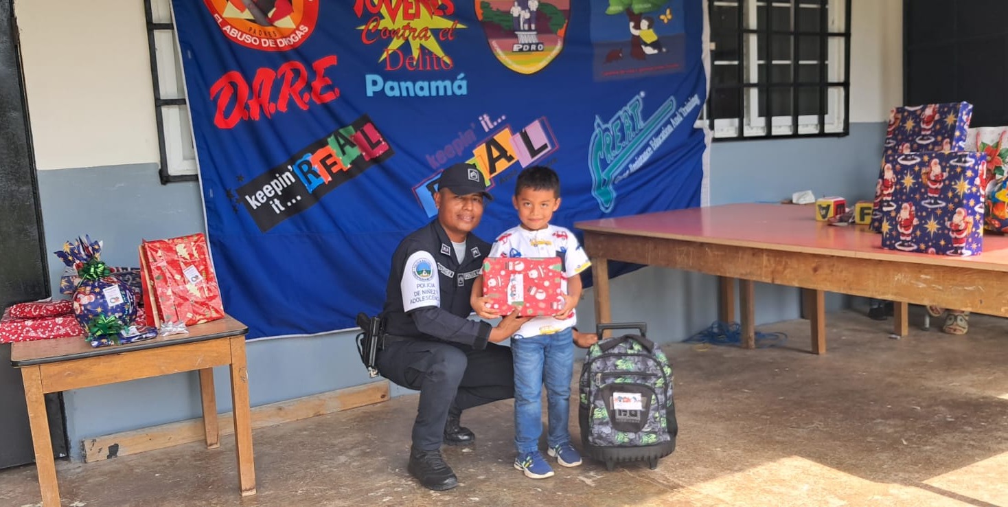 Unidades del Servicio de Policía de Niñez y Adolescencia de la 19.ª Zona de Policía de Chame realizaron una actividad navideña en el sector de Capira, comunidad El Cacao, en el Centro Educativo El Jagua. Como parte de la actividad, las unidades policiales entregaron regalos a niñas y niños, beneficiando a un total de 23 estudiantes, quienes disfrutaron de un ambiente festivo y de convivencia comunitaria. Además, se desarrollaron actividades lúdicas y dinámicas recreativas orientadas a promover la integración y el sano esparcimiento. |