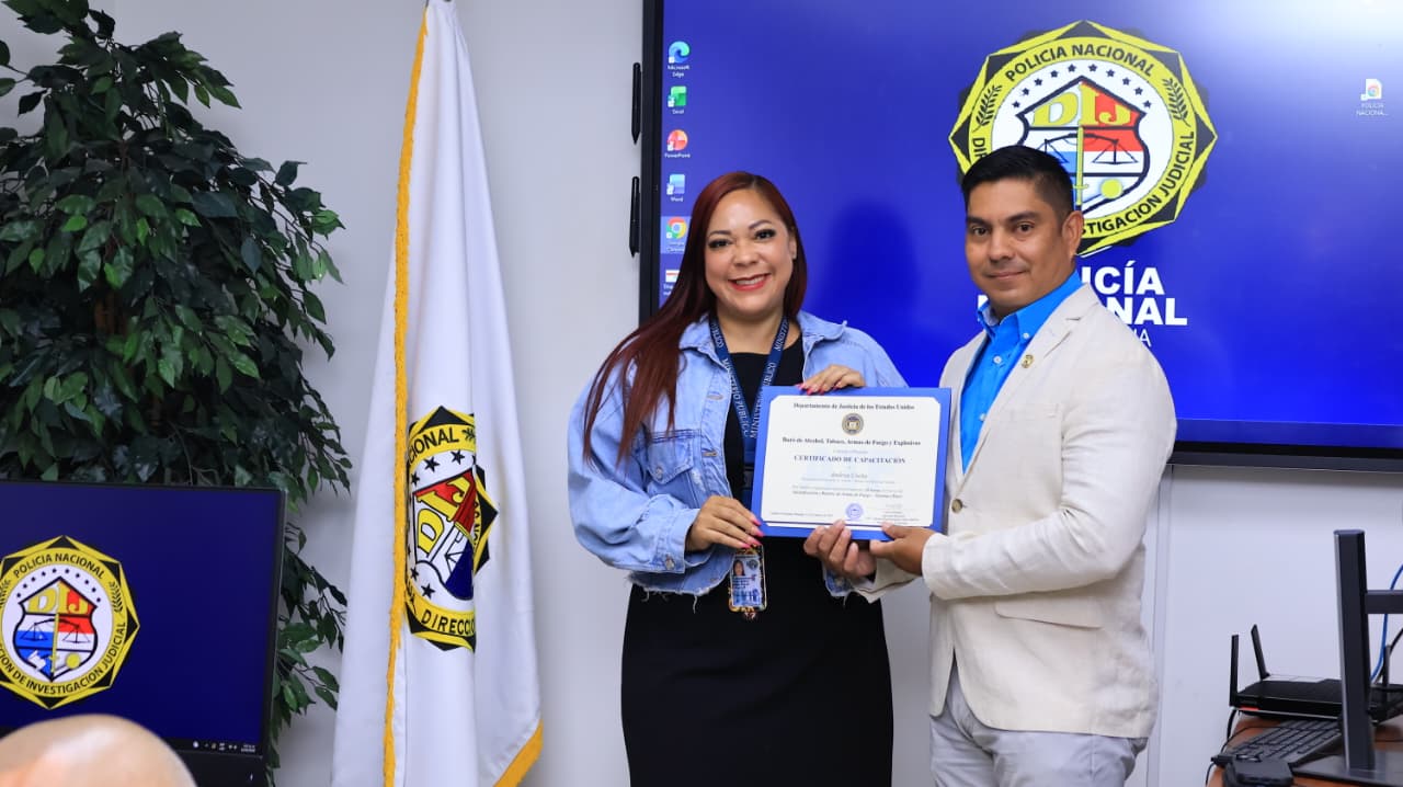 Culmina con éxito la jornada de capacitación dirigida a unidades policiales, funcionarios de criminalística y del Ministerio Público, sobre el tráfico de armas de fuego, impartido por personal de la Oficina Regional de Alcohol, Tabaco, Armas de Fuego y Explosivos (ATF). Con la finalización de esta capacitación, se refuerzan las capacidades técnicas y operativas de las instituciones participantes, contribuyendo al fortalecimiento de las investigaciones y a la lucha contra el tráfico ilícito de armas en beneficio de la seguridad pública del país. |